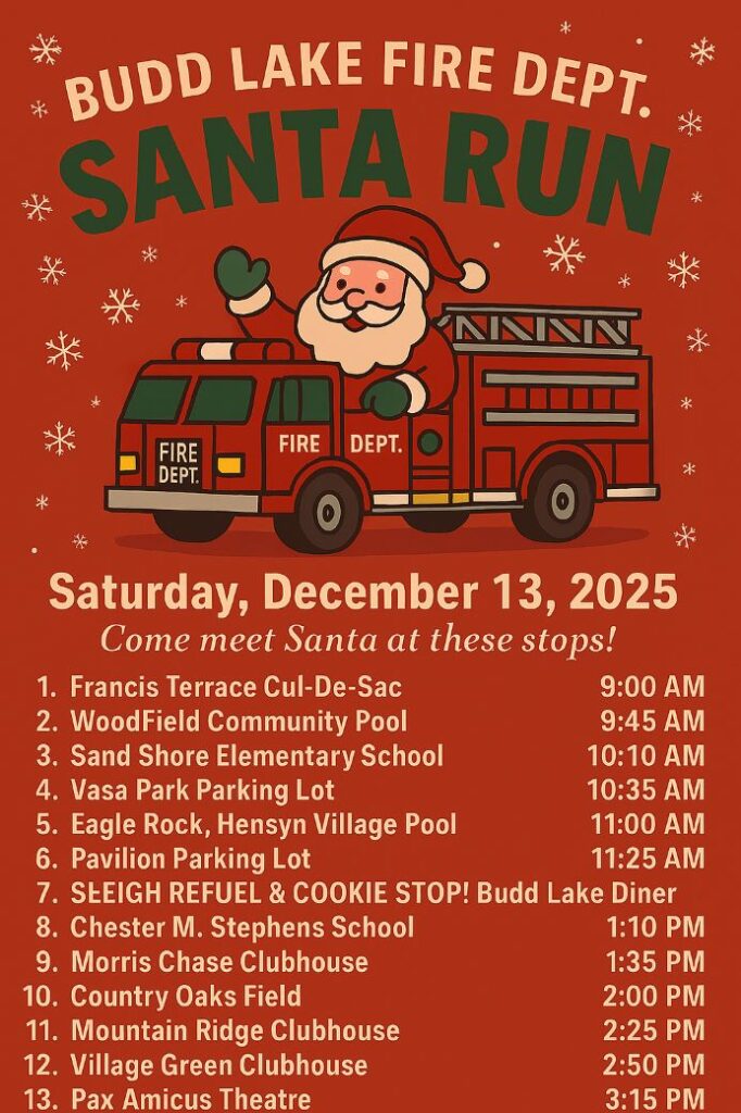 We will be making the below stops please take notice so you don’t miss Santa. - Rt. 80 Car Fire