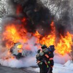 Just as the snowstorm got into full gear a car driving down Flanders Drakestown Rd. lost control and hit the snow and flipped over into the river alongside the bridge. The driver got out on his own and was taken to a nearby hospital with minor injuries. Rescue 55 with 2 firefighters in ice suites … Read more - 2025 Year in Review
