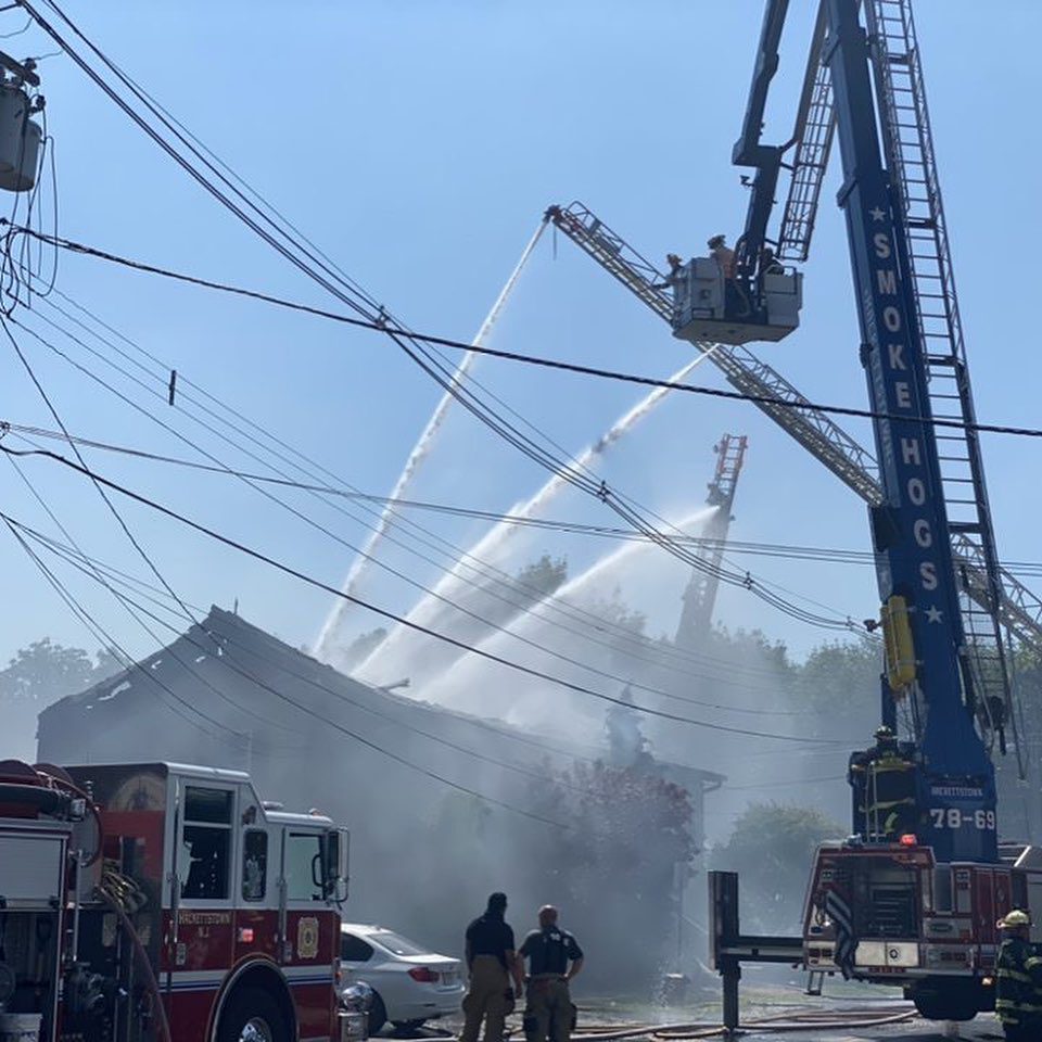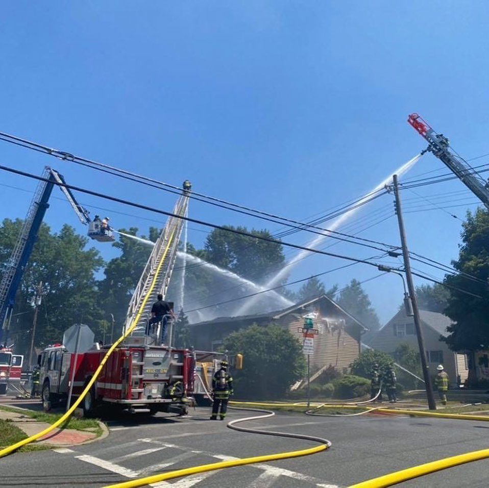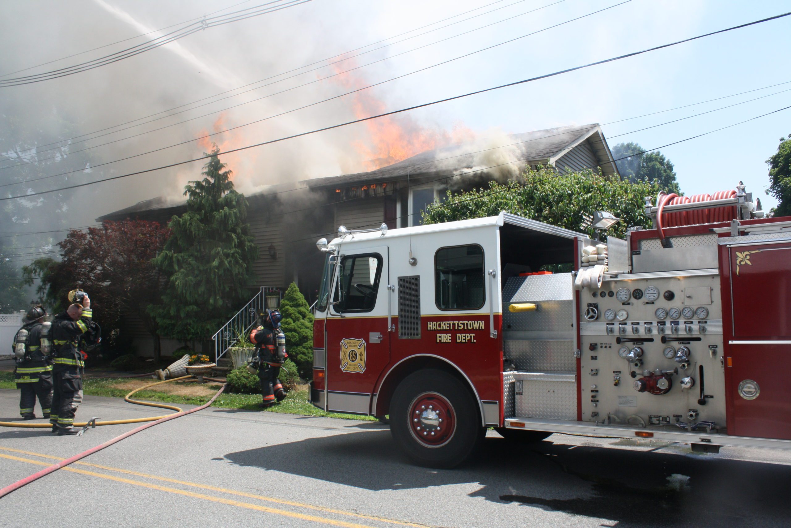 Thursday afternoon on July 9th calls came in to the Warren County 911 center for a house fire on Miller Street in Hackettstown, just down the street from the fire house. Chief 78-60 arrived and reported a fire in the basement and requested a first alarm assignment as the first due engine arrived and laid a line from the front of the fire house and started an interior attack but the fire advanced quickly and firefighters had to back out. Mutual Aid started coming in and a supply line was laid across the railway on high street to Budd Lake’s Ladder and along with Hackettstown’s Ladder and some master streams were put in place then Allamuchy’s Ladder also joined the aerial assault. The fire was put under control within 2 hours, other mutual aid companies were called in to relive manpower due to hot and humid tempters in the 90’s rehab was provided by the Hackettstown Rescue Squad. There were no injuries and the Mount Olive Fire Marshal’s Office, Warren County Fire Marshal’s Office and Hackettstown Police are investigating the fire.