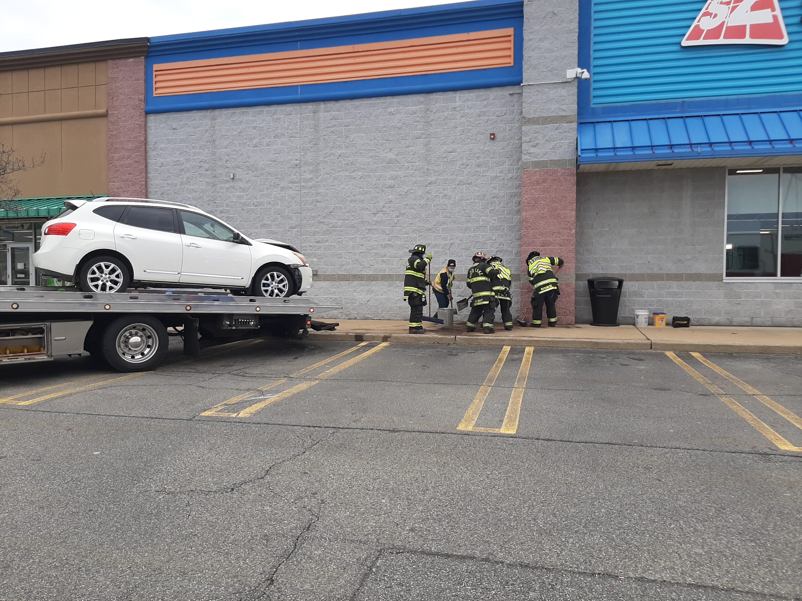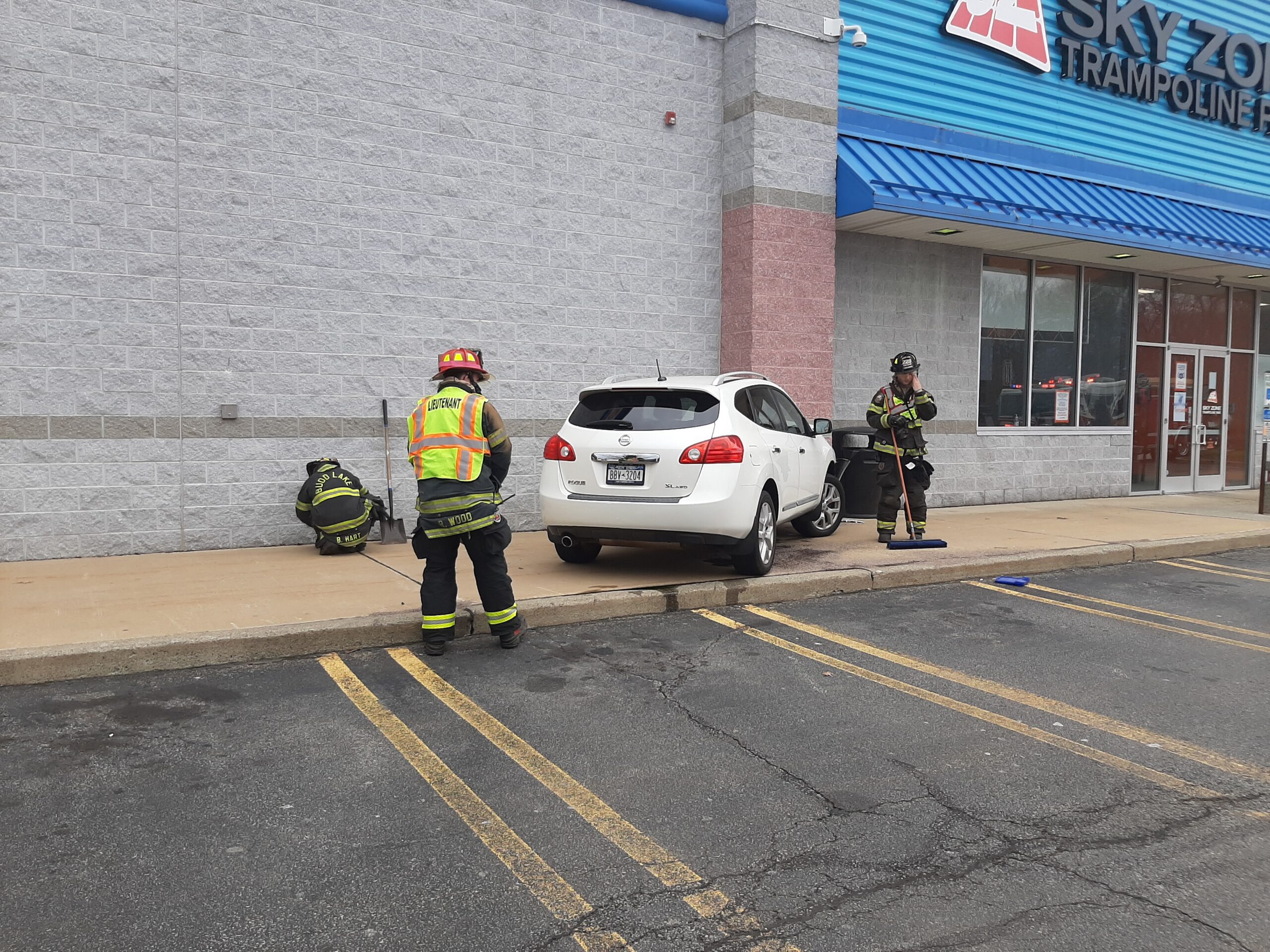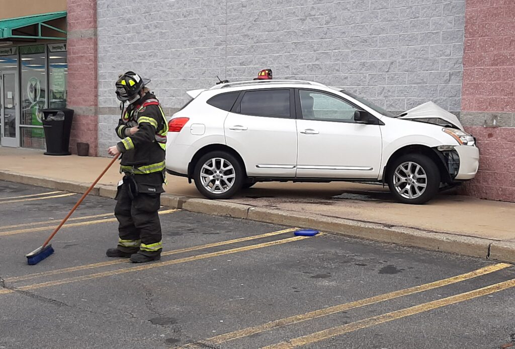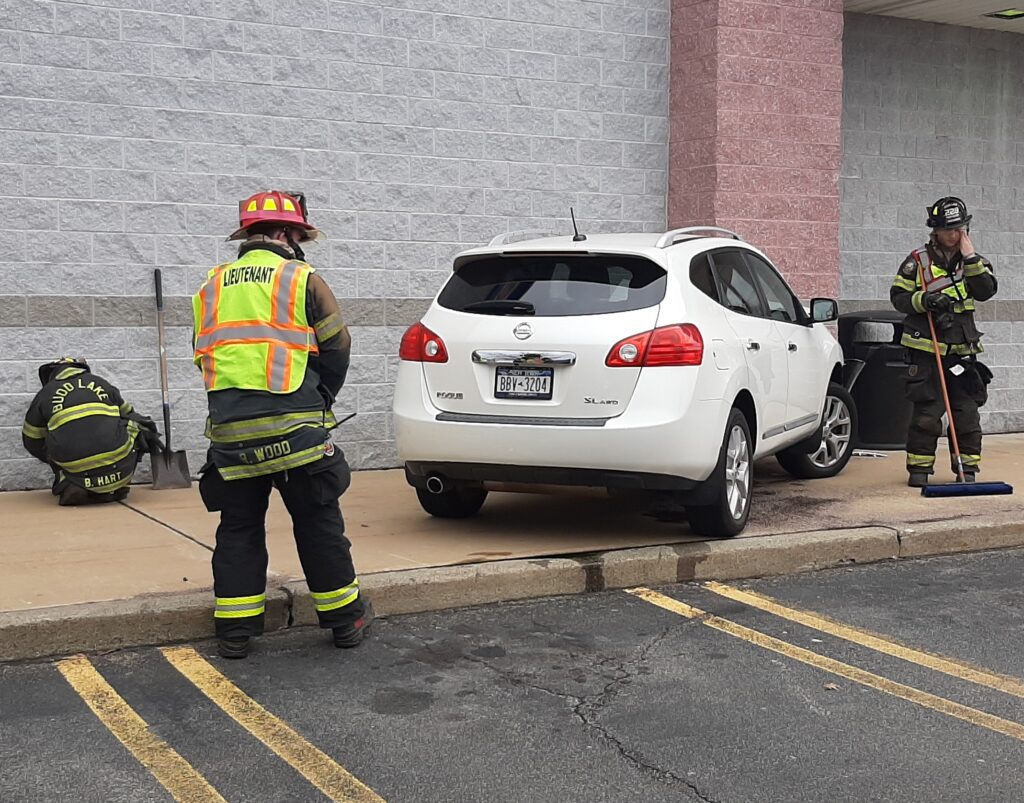 Recently a car lost control an ran into the Ski Zone building. Rescue 55 and Engine 59 responded and found a car into the building. After checking there were no injuries and the building was not damaged but the car was. Crews cleaned up and secured the car and returned to service within a half hour.
