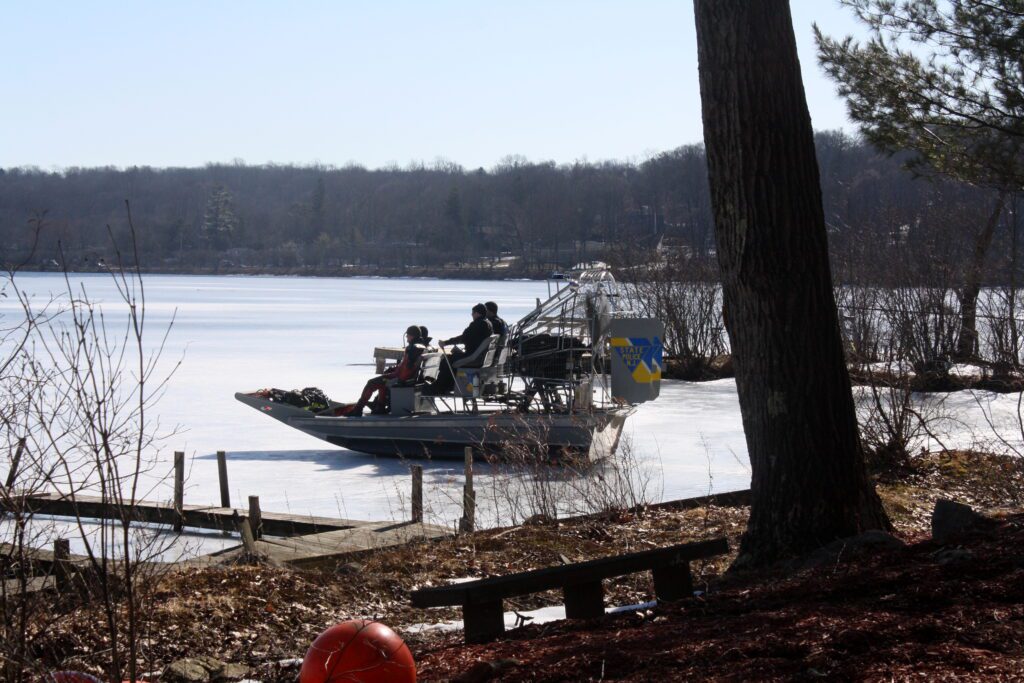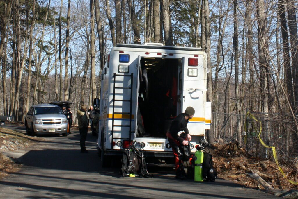 Just as the ice was getting thin on Budd Lake with warming temperatures people were hanging on to the last bit of ice fishing when late Saturday night police received a call of a missing male that was reported to be ice fishing. Car 50 and Rescue 55 along with the rescue squad assisted the police with lights and searching the shoreline. By 3 am Sunday the search was called of and the New Jersey State Police were called back out around 8 am along with Rescue 55, Car 50, 51 and the Rescue Squad. Sadly 2 hours later the man’s body was recovered. The crew from the rescue also assisted the State Police divers with deconning their equipment.
