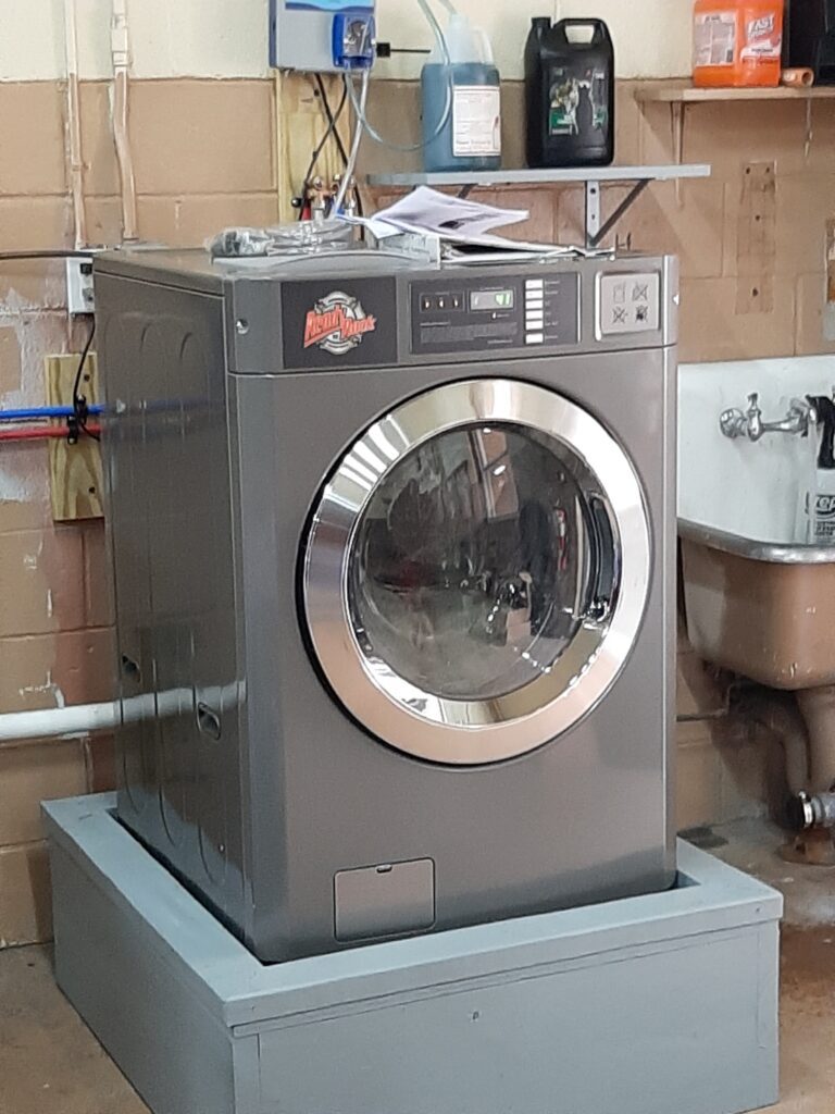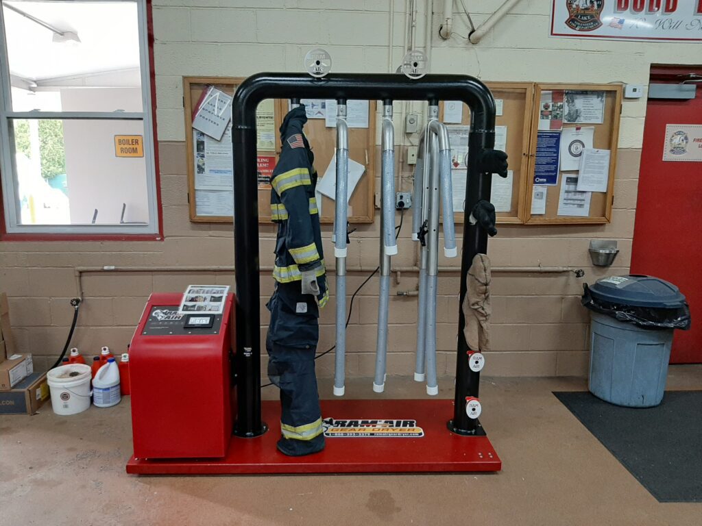 Recently the Fire Department put in service a new washer and dryer for firefighting gear only. The special washer is designed to was turnout gear witch helps keep the cancer causing carcinogens off firefighter and preventing them from taking it home to there loved ones. The dryer is not your average dryer it is designed to hang turnouts on a rack and dry from the inside out also drying gloves and hoods. This equipment was made possible by a capital project funded through the Mayors office and Town Council officials.
