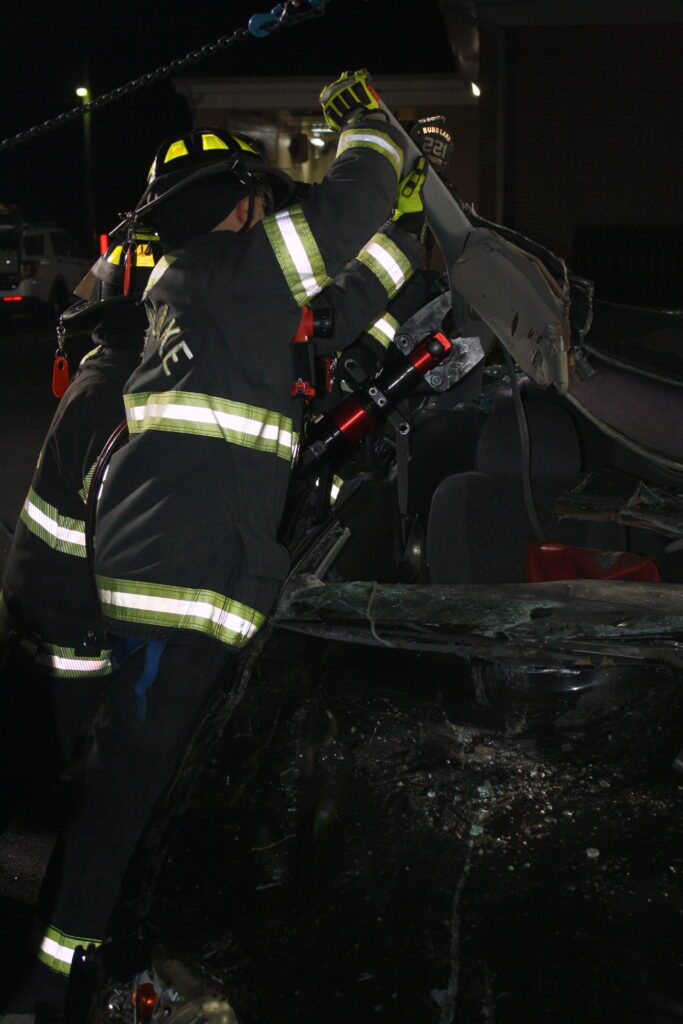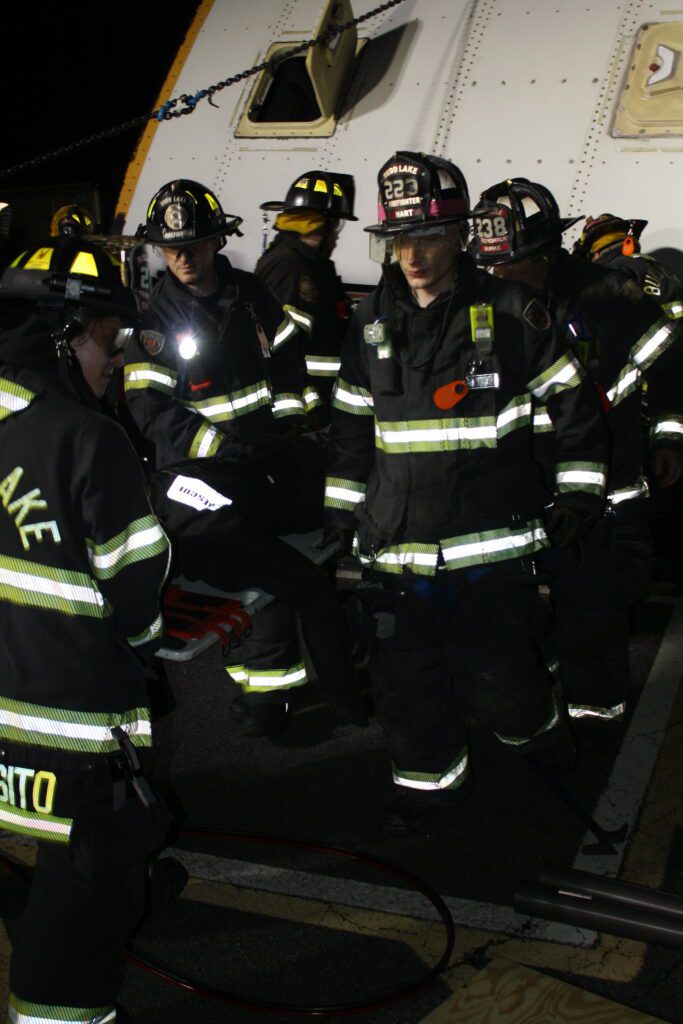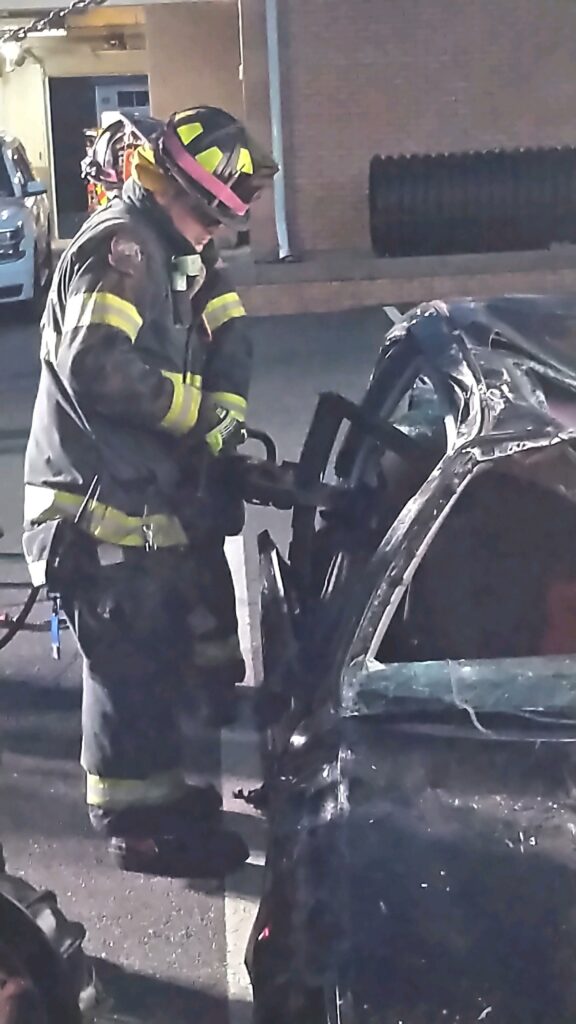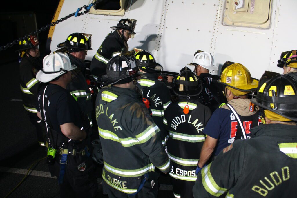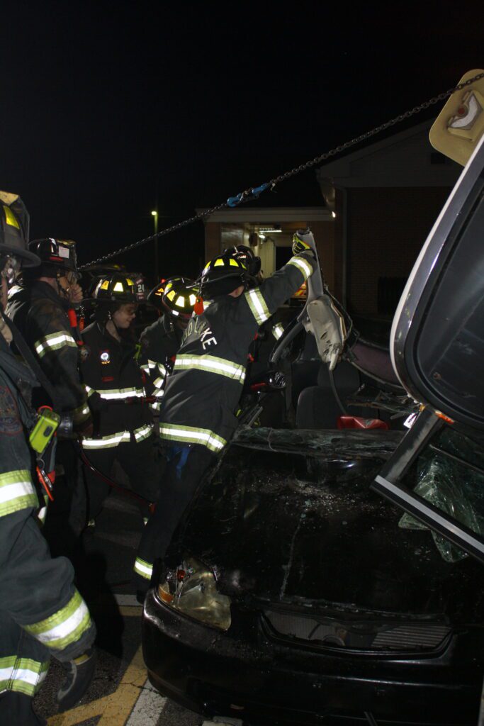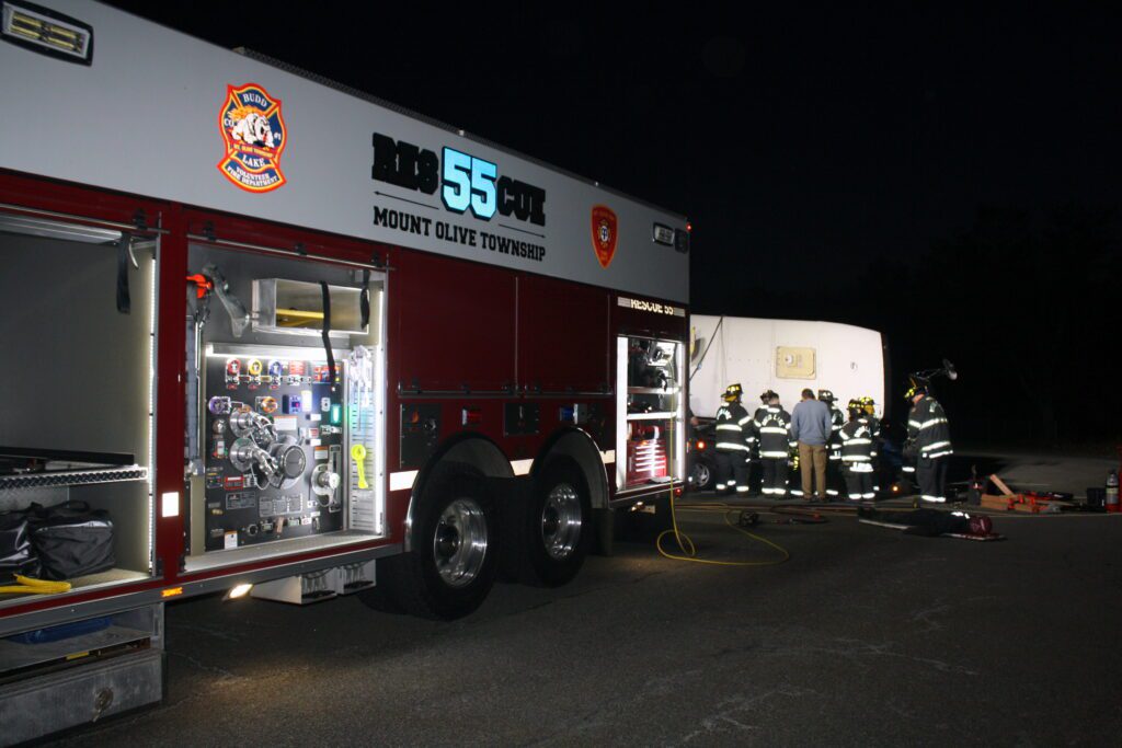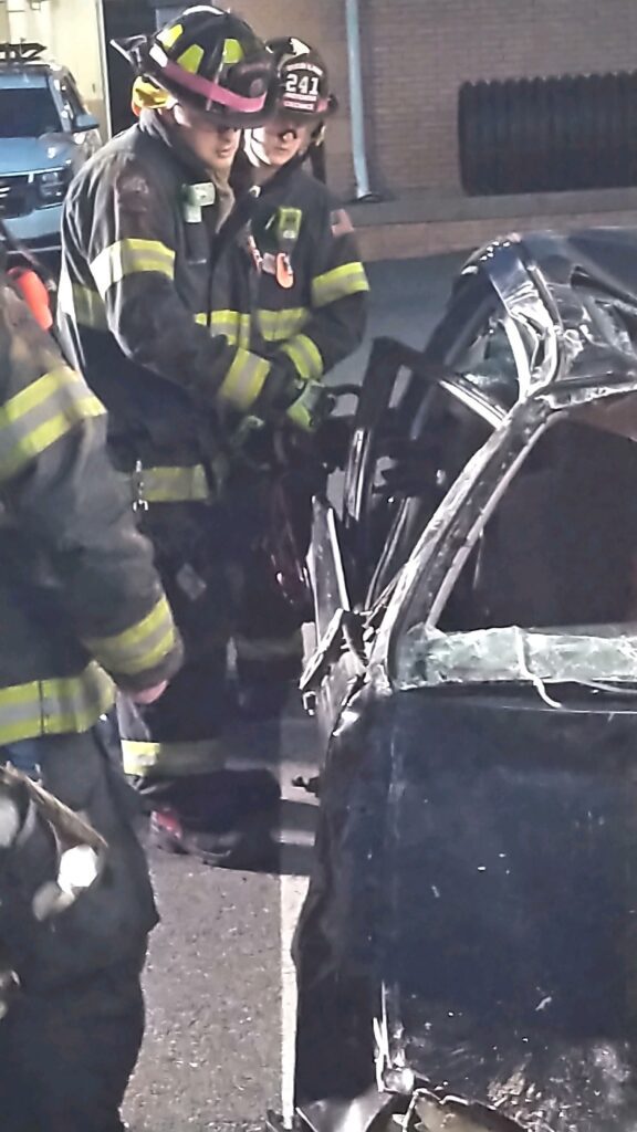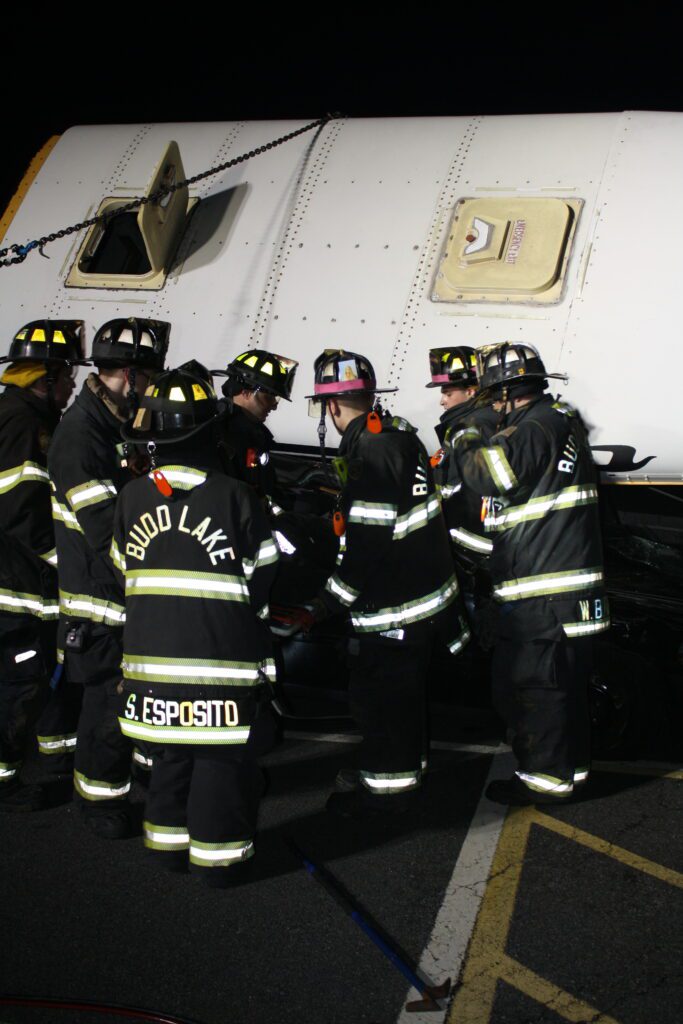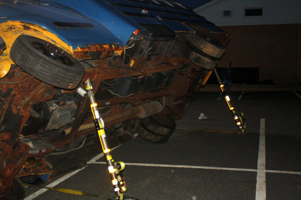 Recently the fire department drilled on the use of air bags and struts, using a donated school bus. The crew were given two scenarios one was a worker trapped under the front of the bus and the second one was a bus overturned on a car with people trapped. The crews used air bags to lift the bus and remove the person then in combination with the air bags, struts and jaws of life they stabilized the bus and the car secured the person in the car and then cut the person out of the car and removed them to awaiting EMS.