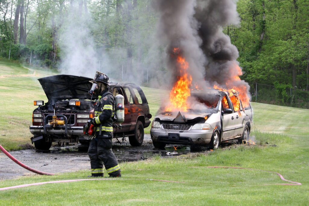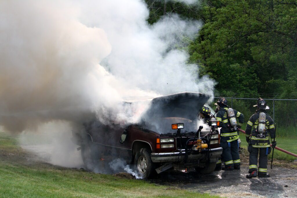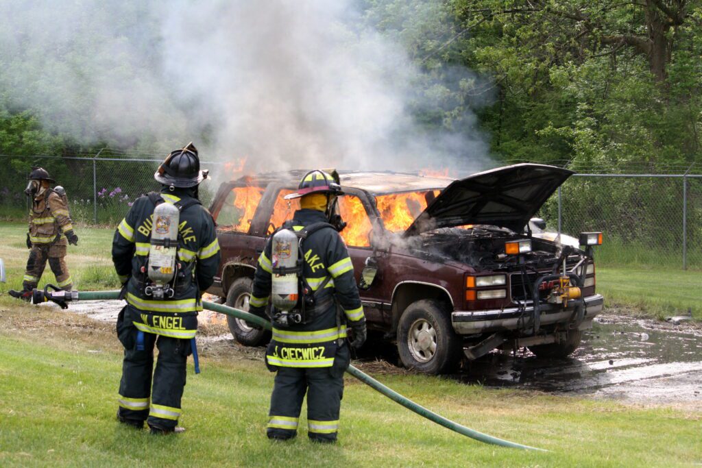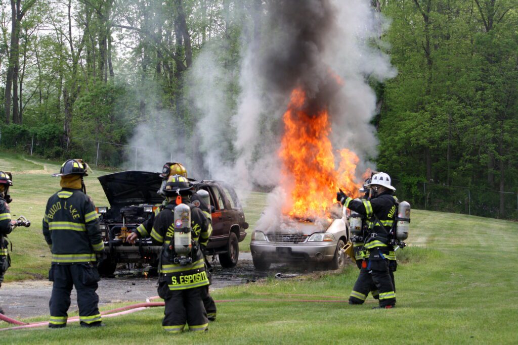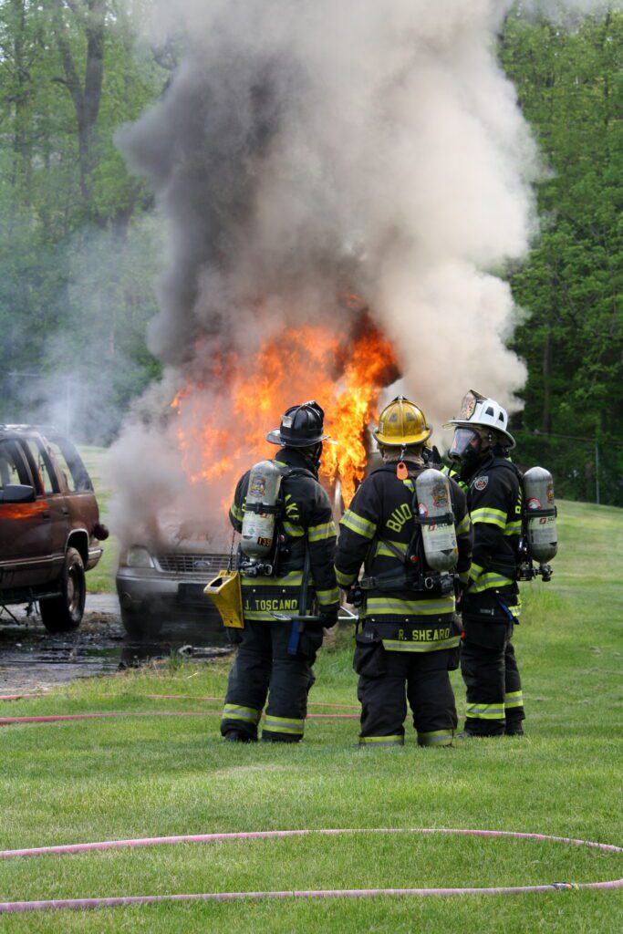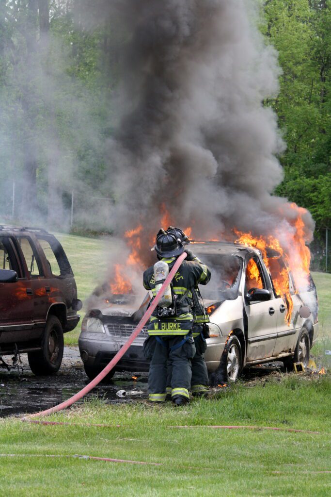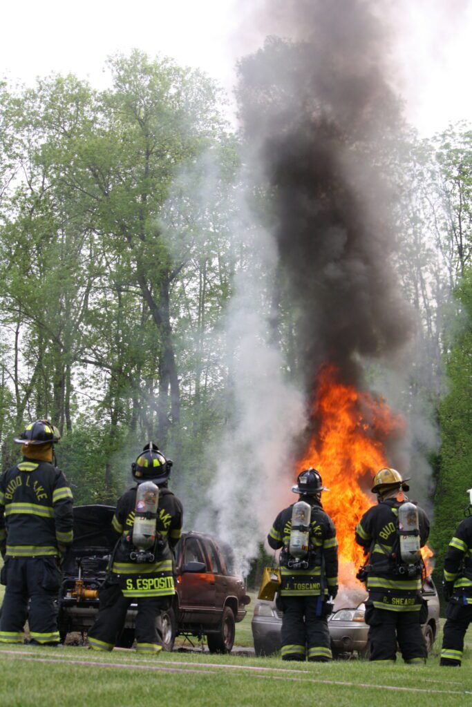 Saturday May 22nd the department went to the Warren County Fire Academy and trained on putting out car fires. E-59, R-55, UT 54 and Chief 2 and 3 spent the morning lighting cars on fire and working on tactics and safe ways to extinguish fire in cars. The training lasted around 2 hours and after some cleanup the units returned.