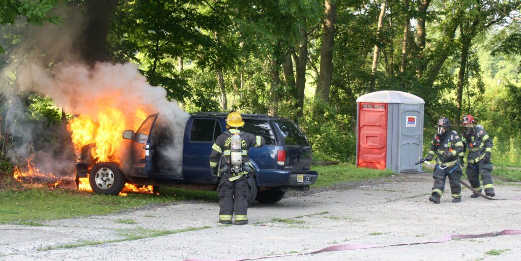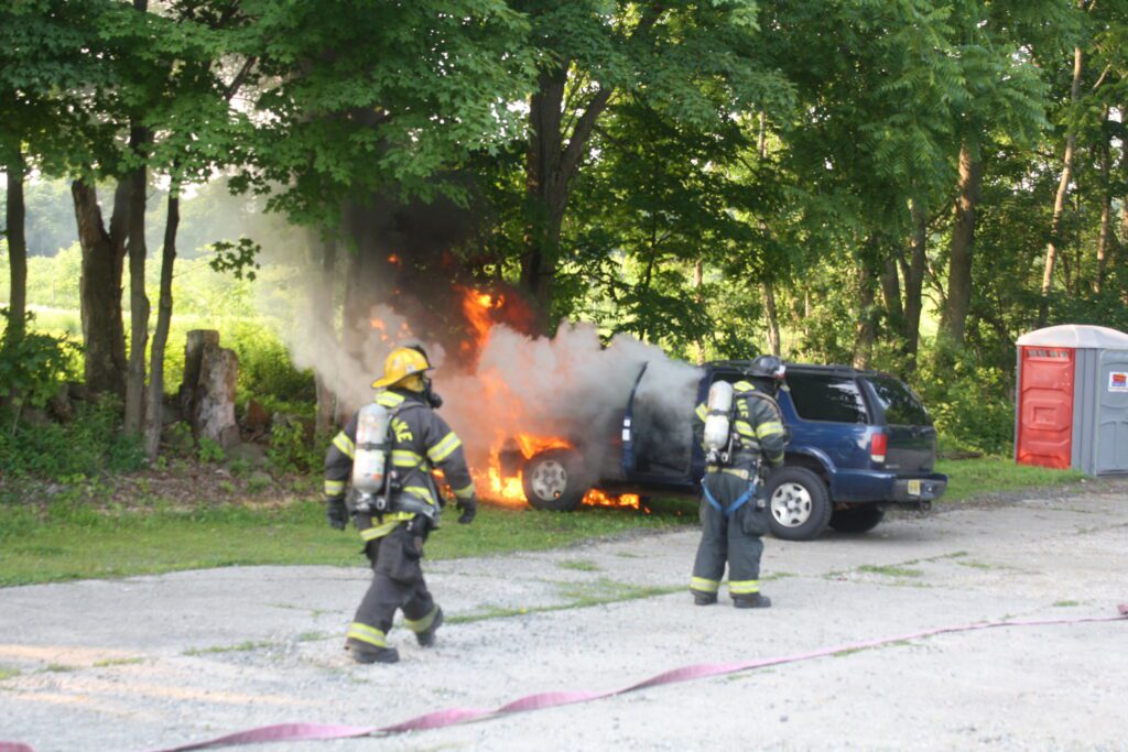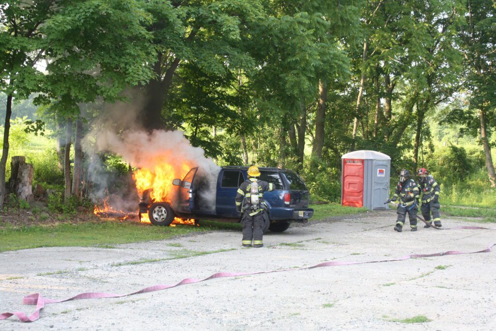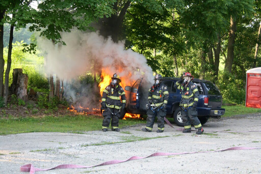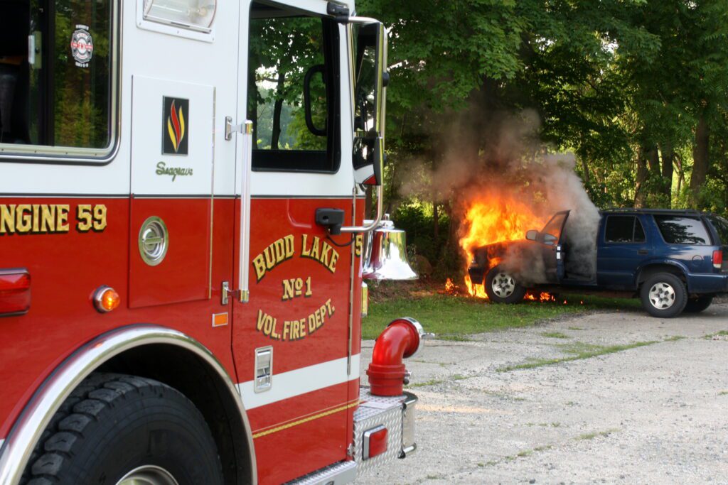 Just after 8am this morning Budd Lake Fire was alerted for a car fire at the community gardens on Wolfe Rd. With Car 51 at command Engine 59s crew led by Cap1 took on the single vehicle fire like clock work. Engine 59 was backed up by Tender 57 second due. The fire was confined to the engine compartment and the dash. There were no injuries and crews cleared within a half hour.