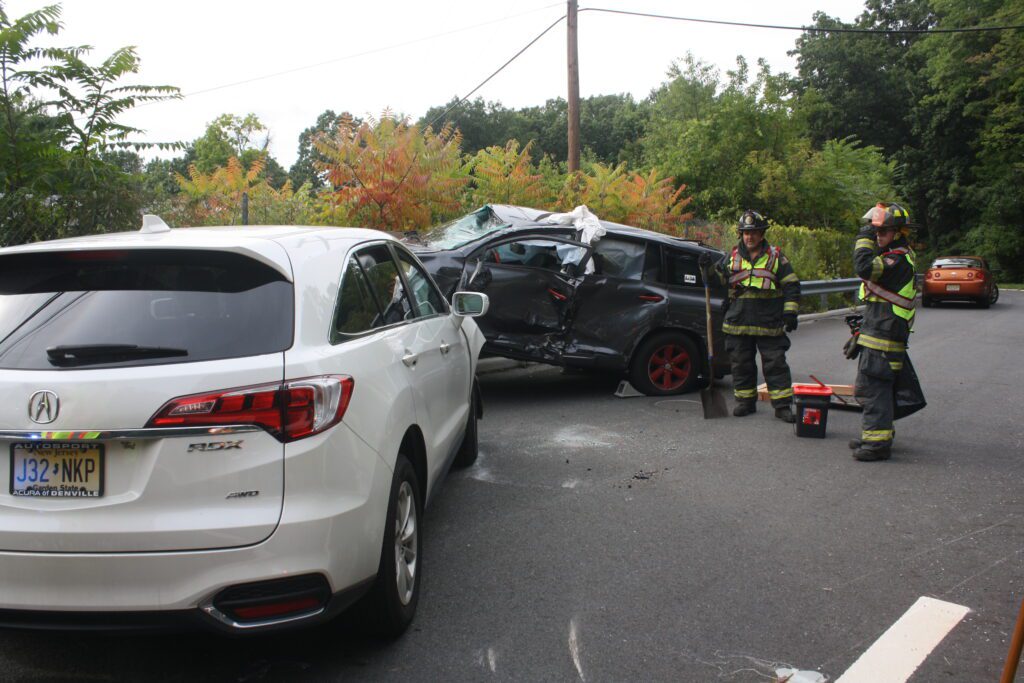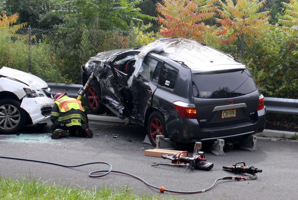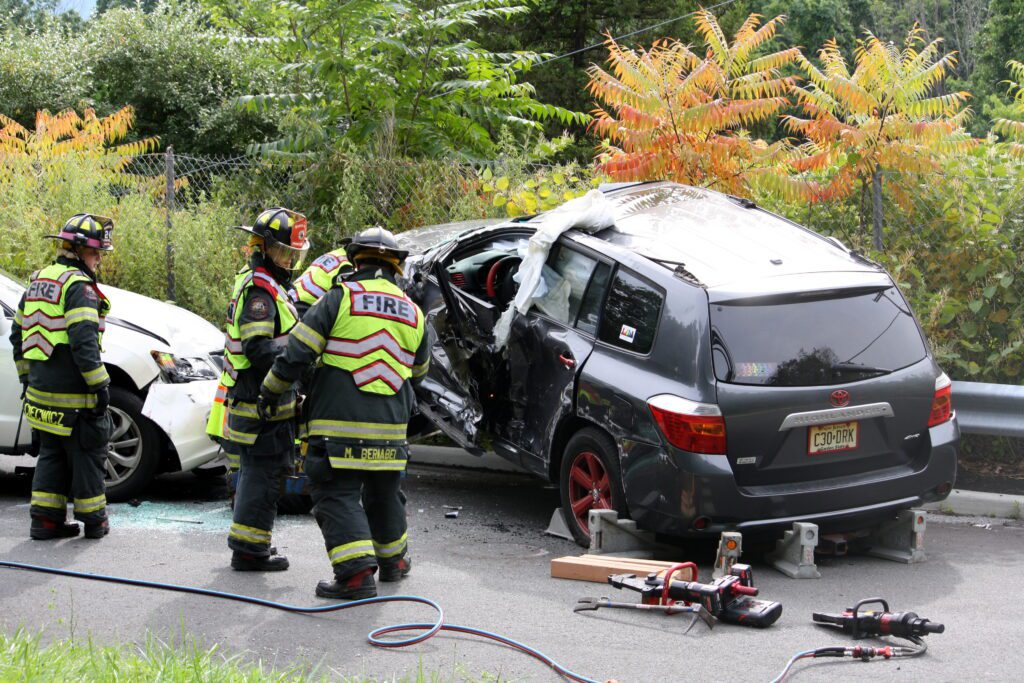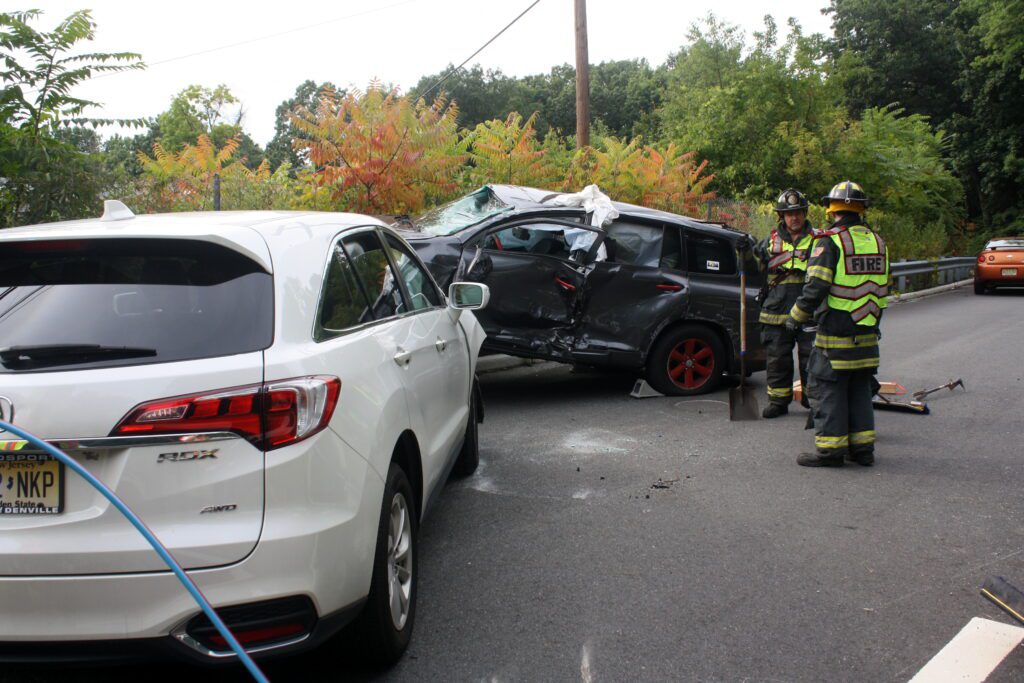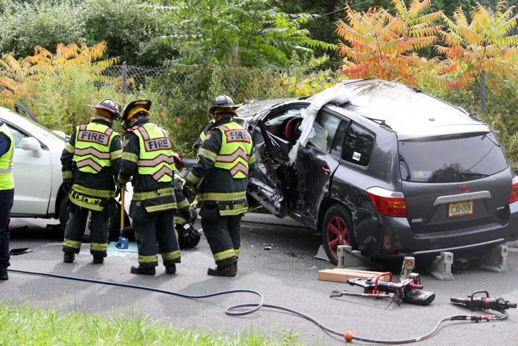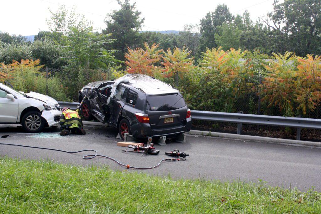 Just before the start of National Night Out crews were dispatched to Rt. 46 and Drakstown Rd. for a 2-car crash, upon the arrival of Car 50, 51 & 52 one car was on top of the guardrail with the person inside. Rescue 55 went on scene and went to work with the jaws and struts to stabilize the car and pry open the door. The person inside was transported to Morristown Hospital with minor injuries. The other driver had no injuries. The crews went back in service within a half hour.