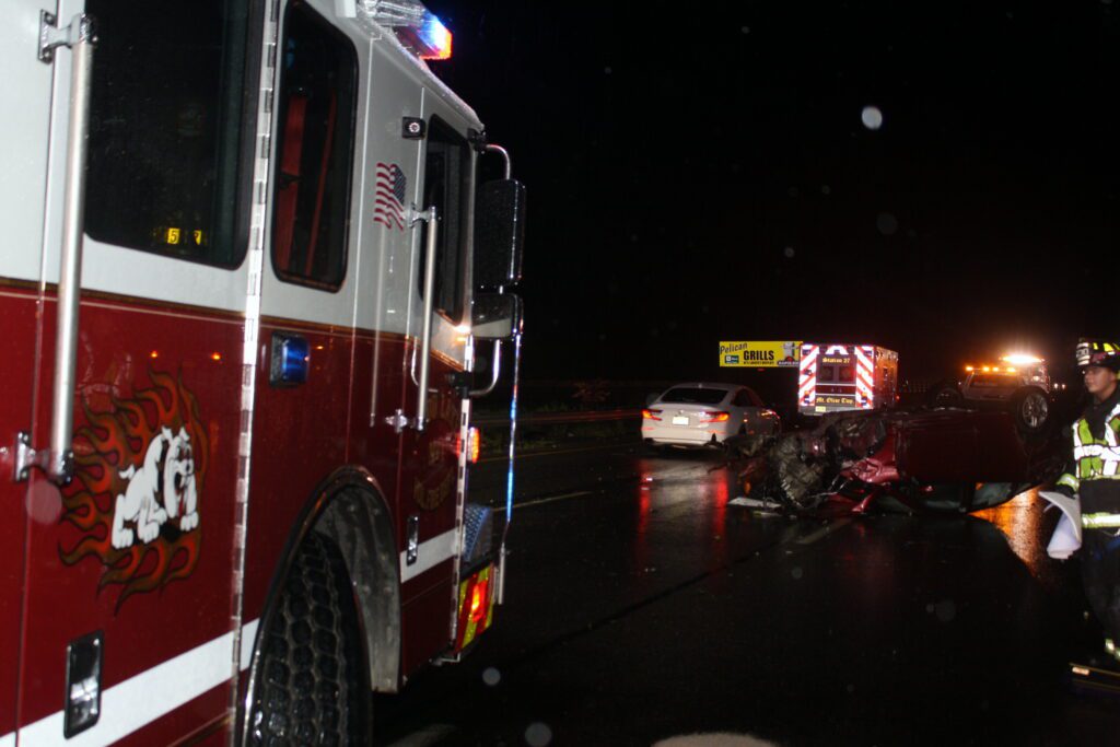 The department keep busy with 2 more car accidents, the first one was on Village Way when a car lost control and hit a light pole and a tree. The rescue and car 51 responded and found a small fire under the hood that was quickly extinguished. The person was checked out by Atlantic EMS an refused medical treatment and was transported by Mom to and area hospital. The second was on the Interstate at mile post 26 during the heavy rain storm. Rescue 55 and Cars 50 & 51 found three vehicles one on its roof crews assisted EMS and secured the vehicles and cleaned up the roadway. All 4 people were treated with minor injuries.