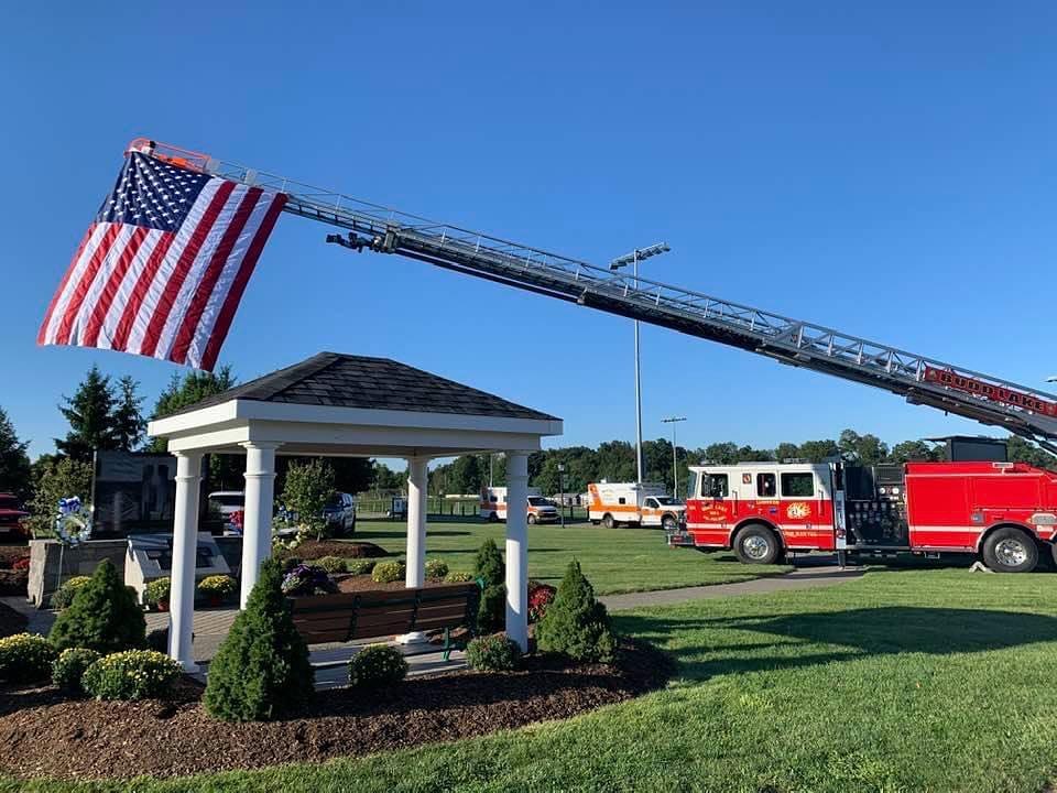 Mount Olive gathered on September 11, 2021 at Turkey Brook Park to remember the terrorist attacks of September 11, 2001. The remembrance ceremony was attended by first responders, members of the town council, area clergy and other leaders of the community and was open to the public. Ladder 58 proudly flew the flag above the memorial as all mount olive emergency services where on hand to remember 20 years later.