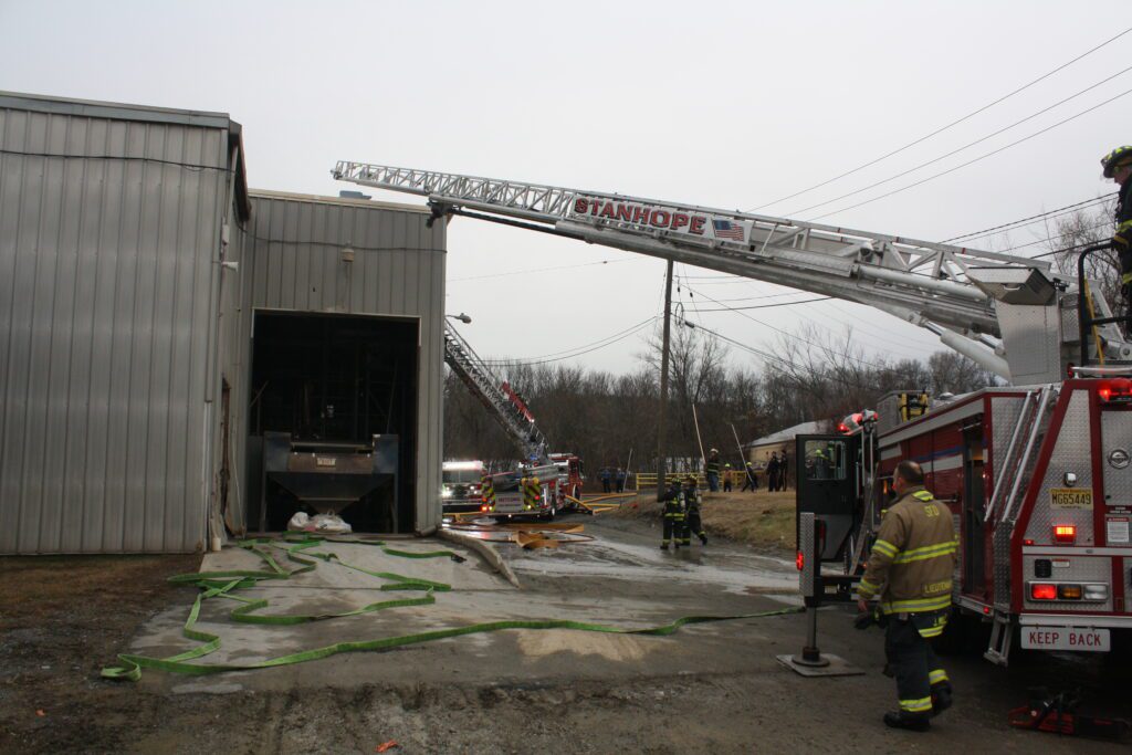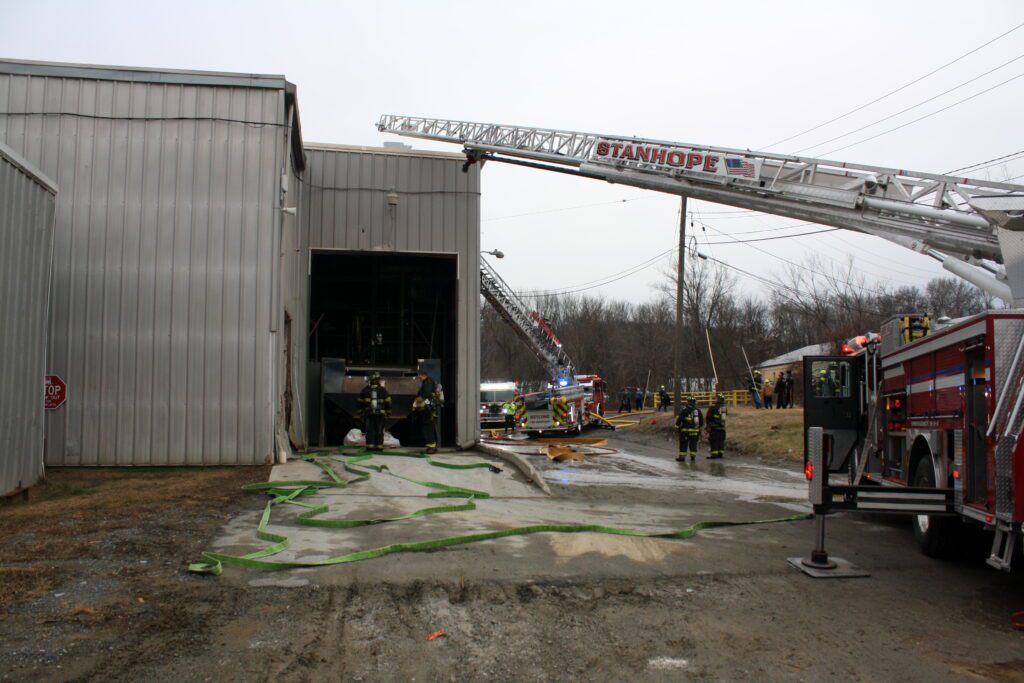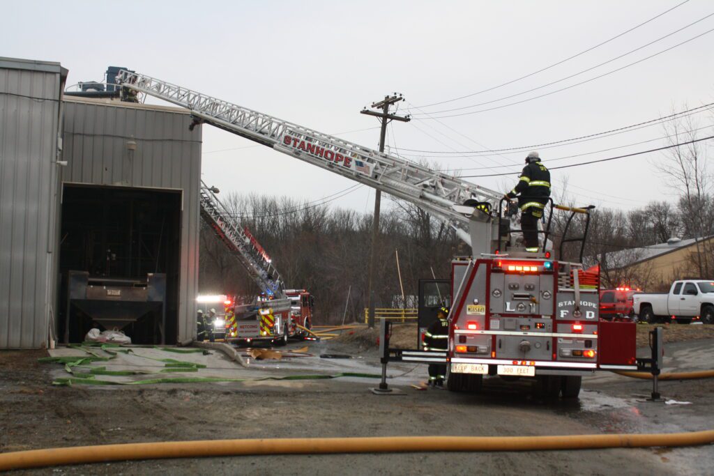 Tuesday afternoon around 3 calls came in for a commercial structure fire on Furnace Street in Stanhope Bro. Upon arrival of Stanhope Chief 1 there was fire and smoke coming from the roof area. Netcong Engine 1 and Tower 1 along with Stanhope Ladder 1 went to the roof and started to open up the roof and had fire in-between the roof. A crew went inside and found no fire, so crews continued to open the roof and knocked down the fire burning in the roof insolation. Budd Lake Fire stood by as a Rapid Intervention Crew while Byram and Hopatcong Fire assisted with filling bottles and overhaul. The fire is under investigation by Stanhope Police and the Sussex County Fire Marshal’s Office.