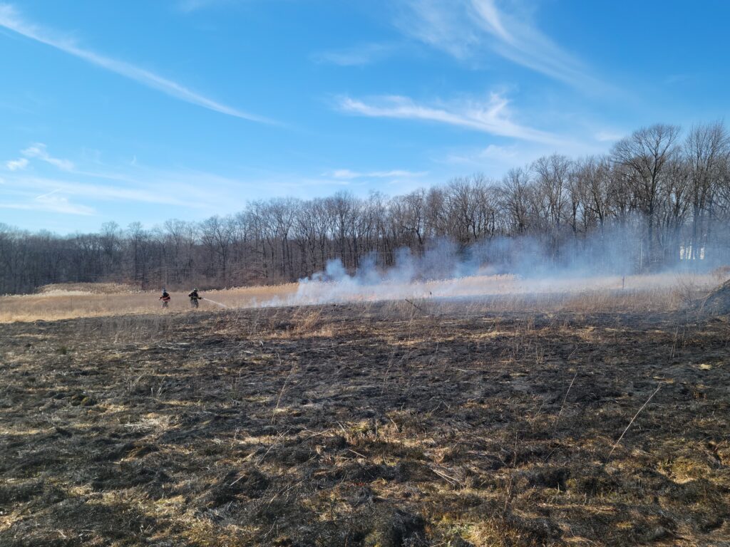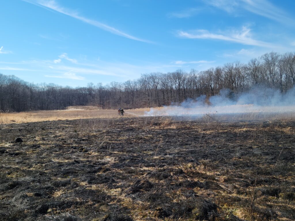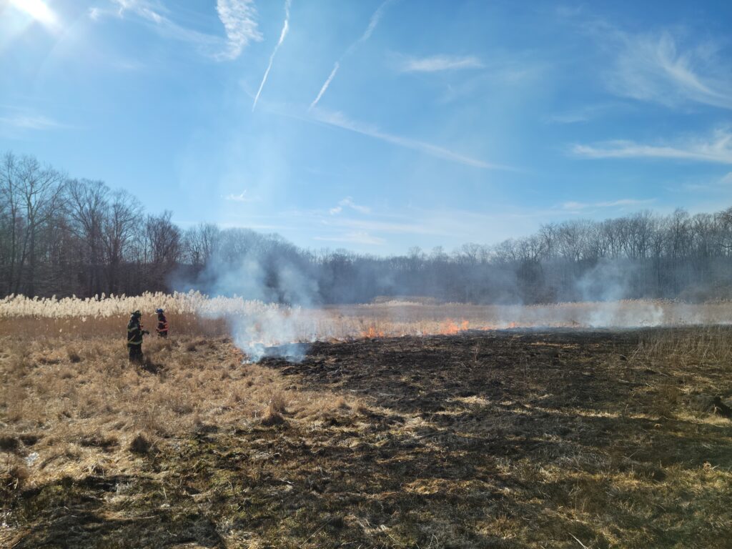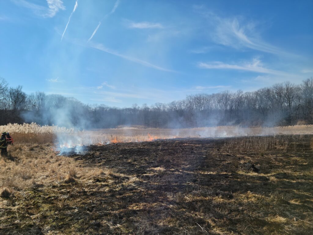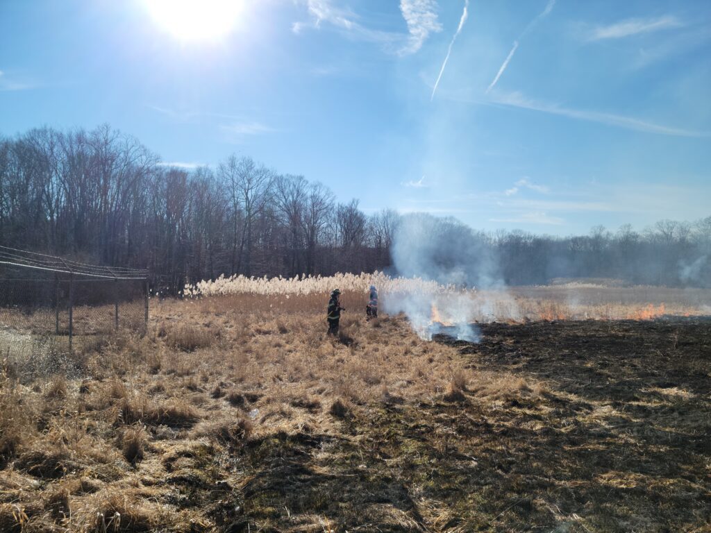 Recently the fire department was dispatched to the corner of Wolf Rd. and Kings Arrow rd. for a brush fire. Car 51 arrived and had 1 50×150 grass fire next the sewer treatment plant on Wolf Road. Engine 53 and Tender 57 along with Flanders 95 and 98 had over 400 feet of forestry line on and around the fire. High winds made the fire grow to 200 x 600 but the crews keep the fire in check and were able to extinguish it within an hour. New Jersey Forest Fire was also on scene.