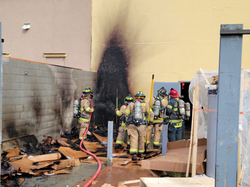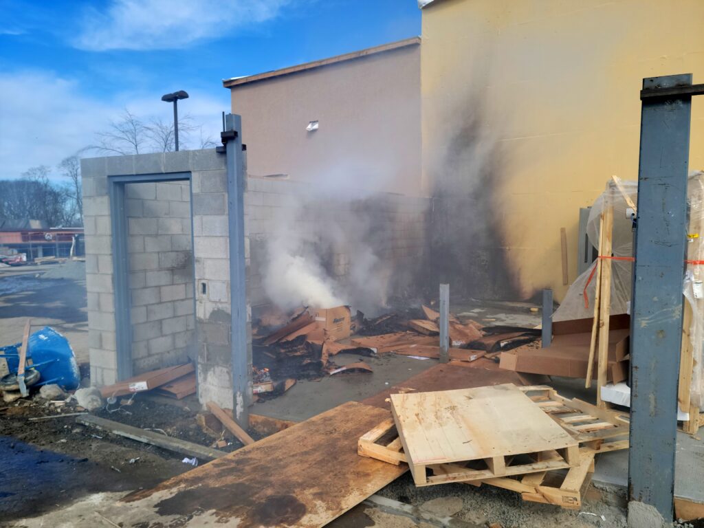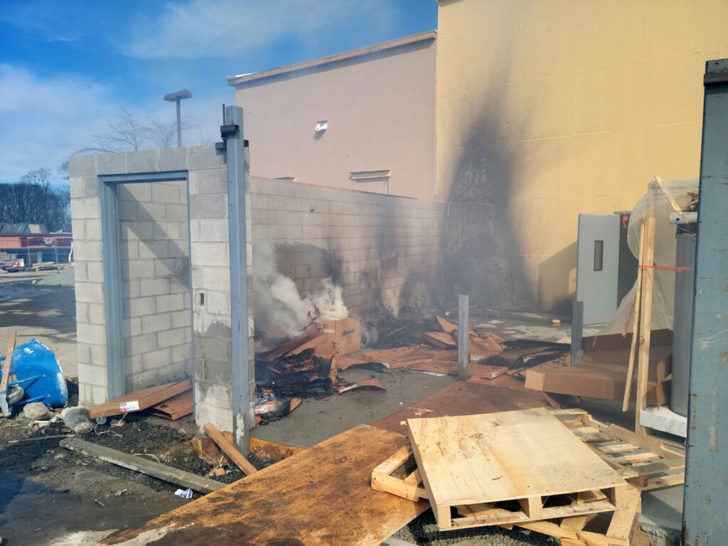 Saturday afternoon both Flanders and Budd Lake Fire units were dispatch to the new Longhorn restaurant in the ITC for a report of a fire in some pallets with extension into the building. When units arrived, workers were putting water on the fire Engine 95 stretched a line to the rear and quickly put the rest of the fire out. Ladder 58, 96 Engine 53 all checked for extension within the building but the fire was contained to the exterior. This was a scare they are just rebuilding from the fire that destroyed the building over a year ago.