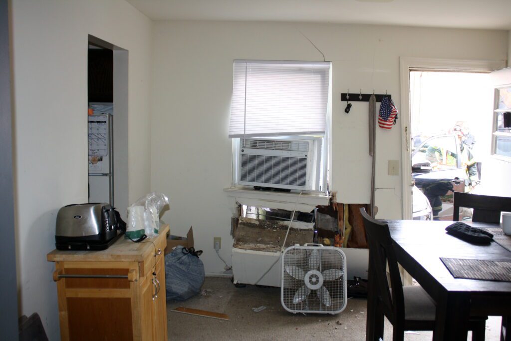 Sunday afternoon the department was called to Eagle Rock Village building # 17 for a car into a building. Car 50 and 51 along with Rescue 55 were assigned 4 apartments were evacuated and the crews assisted the damage. The building inspector was called and the determination was that 2 apartment would be unlivable while the complex made repairs. There were no injuries from the crash Mount Olive Police investigated the crash.