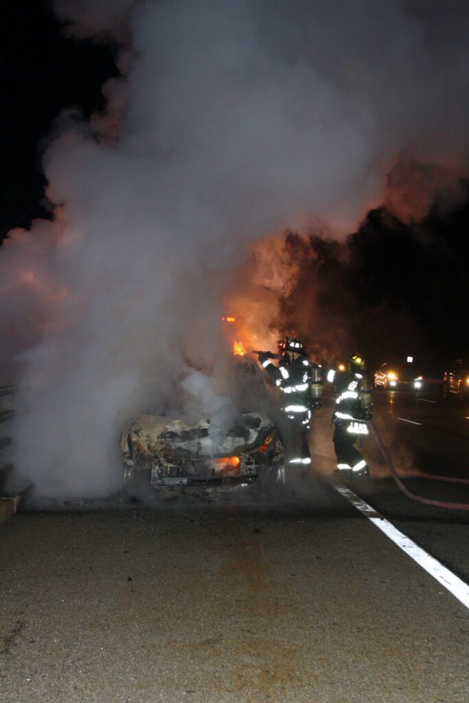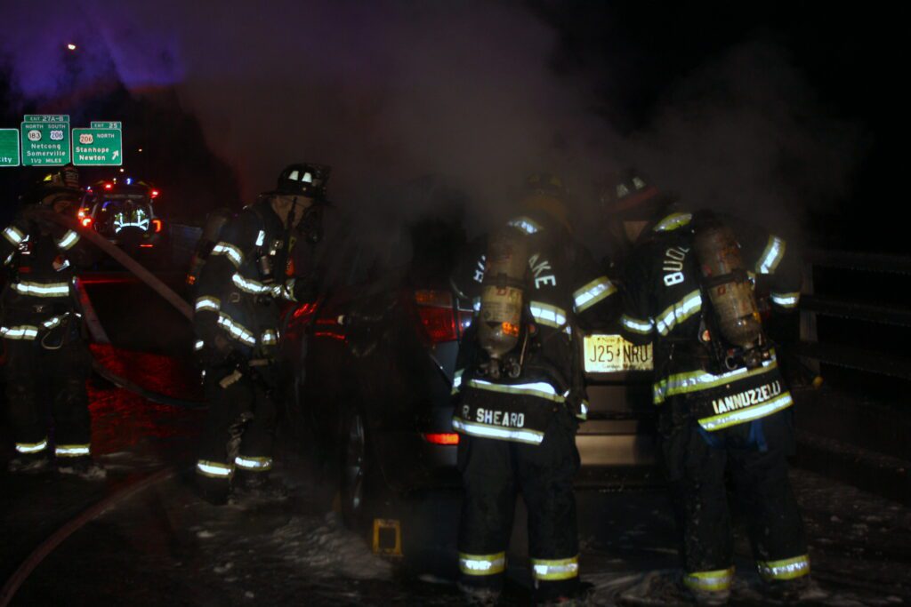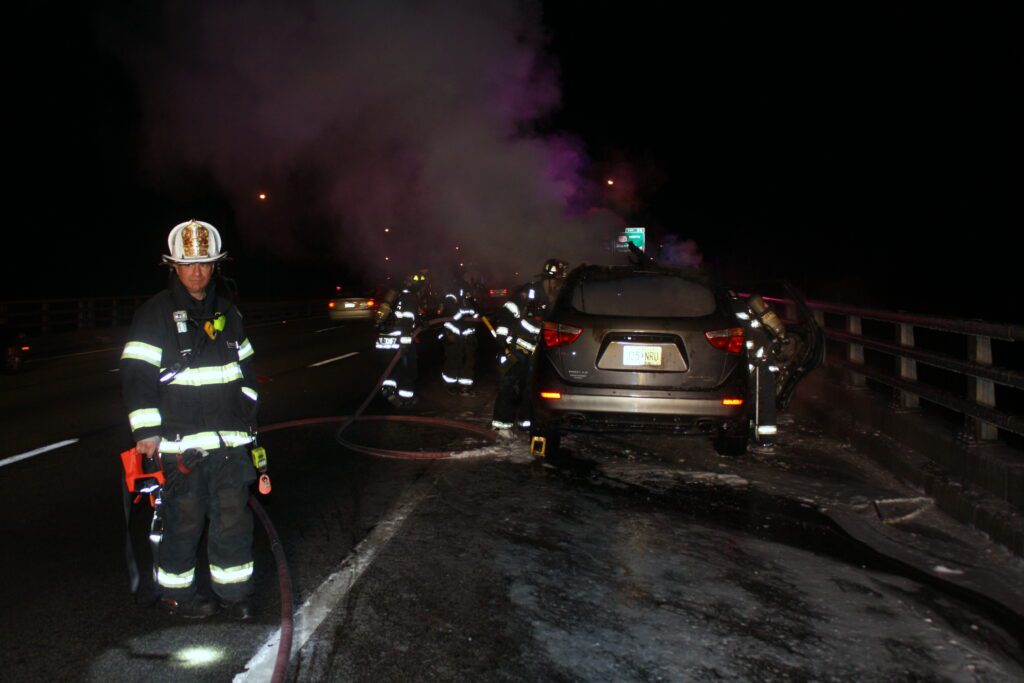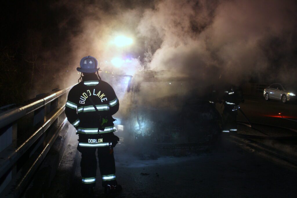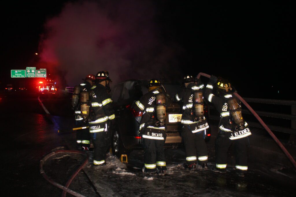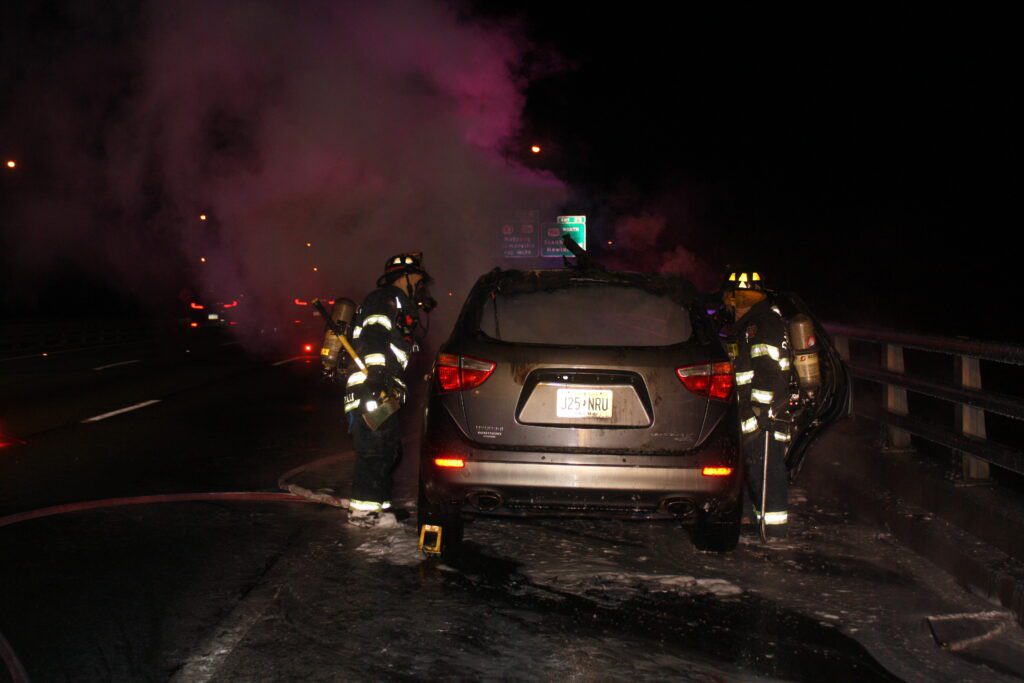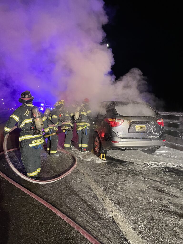 Early Friday morning firefighters were sent to route 80 east just before exit 25 for a car on fire. Cars 51, 52 and 50 along with Engine 59 were assigned to the call and arrived to find a SUV fully involved. Engine 59 stretched their front bumper line on the fire and quickly knock down the fire as NJ State Police shut down 1 lane. There were no injuries and the crew went back in service within 45 minutes.