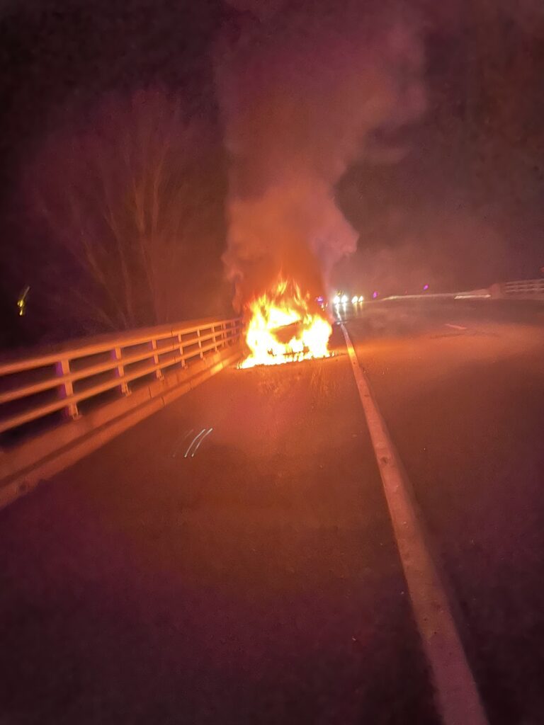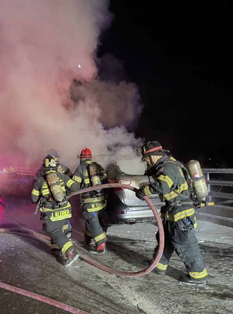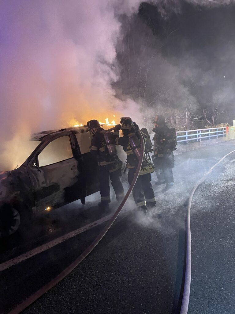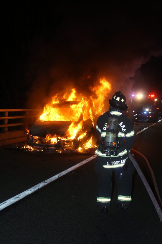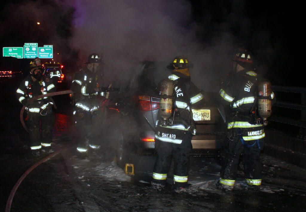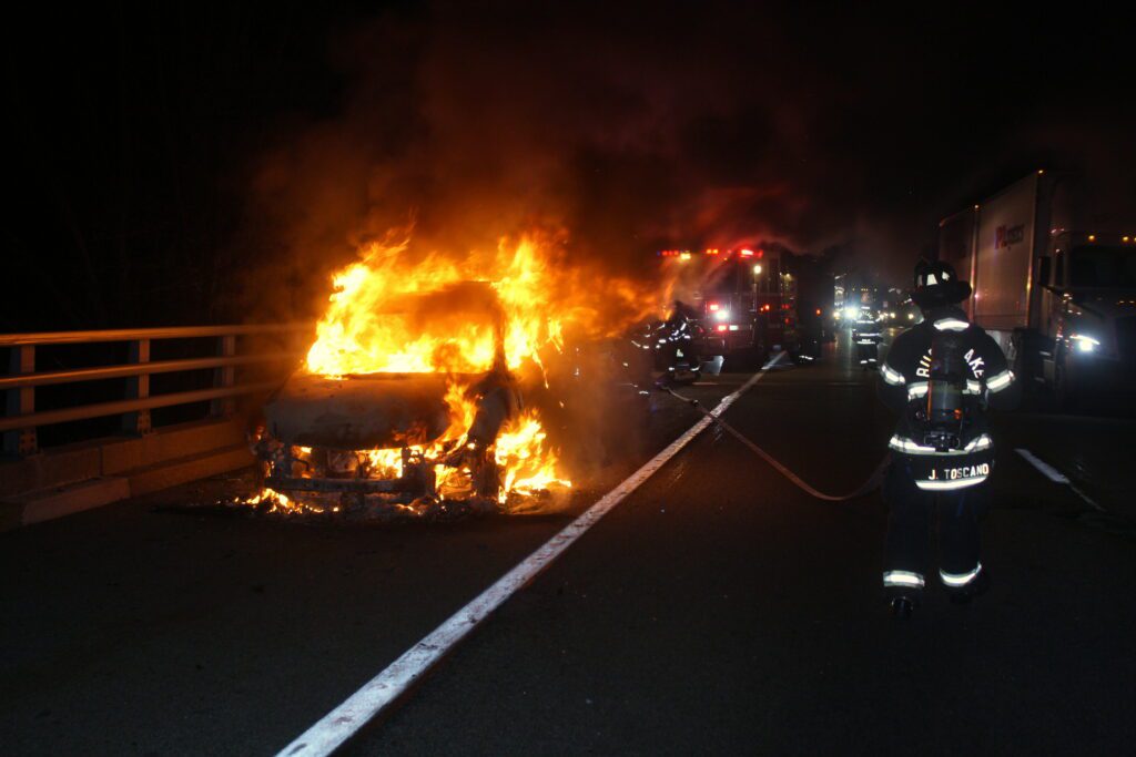 Early Friday morning firefighters were sent to route 80 east just before exit 25 for a car on fire. Cars 51, 52 and 50 along with Engine 59 were assigned to the call and arrived to find a SUV fully involved. Engine 59 stretched their front bumper line on the fire and quickly knock down the fire as NJ State Police shut down 1 lane. There were no injuries and the crew went back in service within 45 minutes.