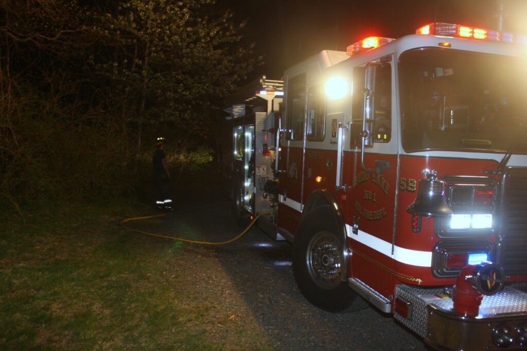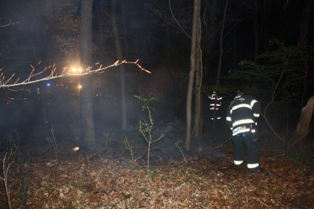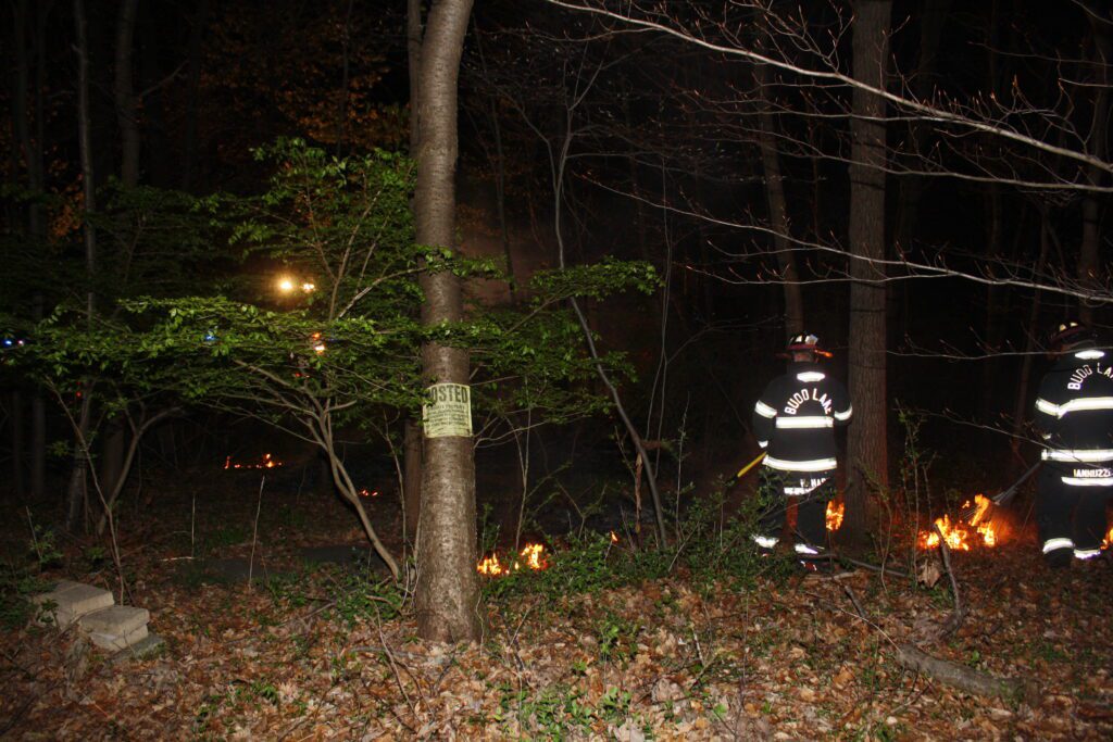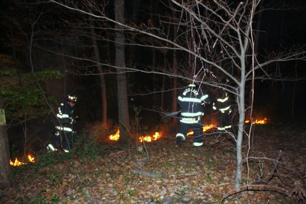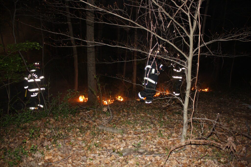 After 9 pm on Sunday night the department was called to the end of Mine Hill Rd. for a brush fire Car 50 reported a 50 x 200 brush fire in the wood next to the house. Engine 59, Utility 54 and car 51 arrive and used a 300-foot trash line to extinguish the fire along with a power wagon from NJ Forest Fire Service. The fire was brought under control within a half hour after some mop up crews returned and the forest fire service remained on scene for a little while longer. There were no injuries at the scene and no damage to the house.