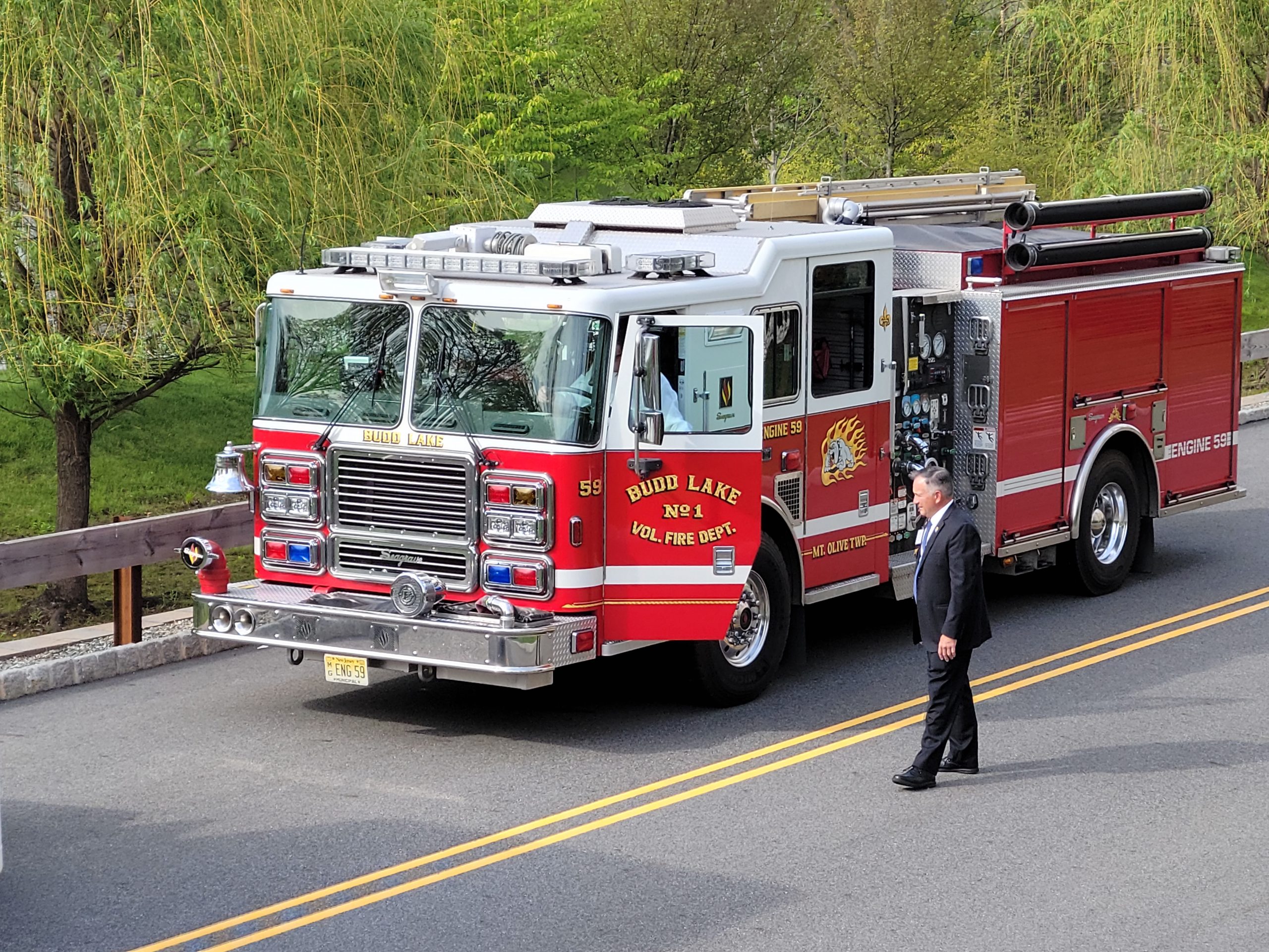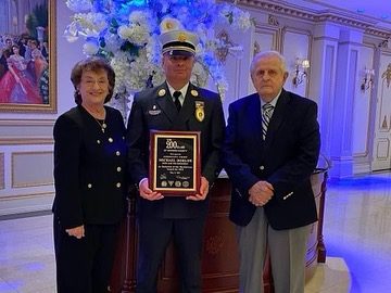 Last evening Assistant Chief Michael Dorlon was presented the Meritorious Service Award by the Morris County 200 Club for his courageous actions at a structure fire April 29, 2021. The members of Budd Lake Fire Department couldn’t be prouder. Budd Lake Fire Department was dispatched to a structure fire on Netcong Road on April 29, 2021. Assistant Chief Michael Dorlon (Car 52) was one of the first Chiefs on scene and was advised that there was a renter in an apartment in division two of the two-story structure. Without hesitation, Assistant Chief Dorlon donned his personal protective equipment and self-contained breathing apparatus and made his way up the stairs under heavy smoke conditions. He started to make entry into the apartment on division two where he encountered hoarding conditions. As he felt his way into the apartment, he found the unconscious victim on the floor. Unassisted, Assistant Chief Dorlon pulled the victim down the stairs and was met at the bottom by police on the scene. The resident was moved to safety where EMS provided medical assistance. As Assistant Chief Dorlon exited the structure the first engine crew entered the building, located the fire in the bathroom of division two, and quickly extinguished it. Even though he took extraordinary actions that day, unfortunately the victim succumbed to injuries sustained in the blaze. Attending the dinner to support Assistant Chief Michael Dorlon was Chief Compano, Assistant Chief Maloney, Lt. Engle and Lt. Herring. Engine 59 was on display outside as the 200 Club celebrated their 50th Anniversary.