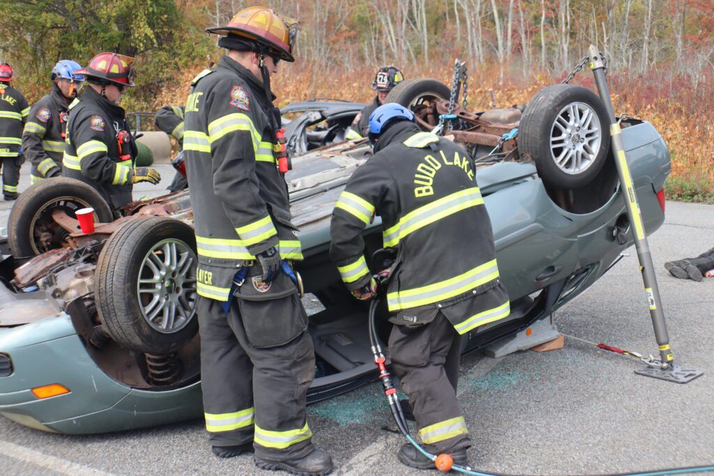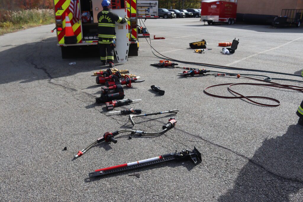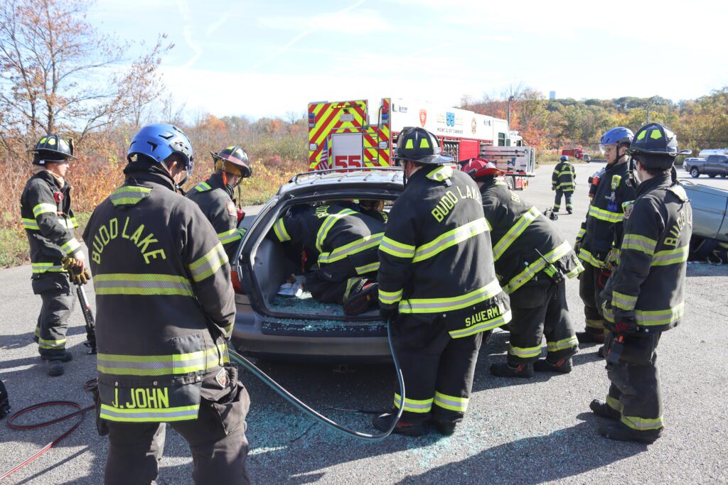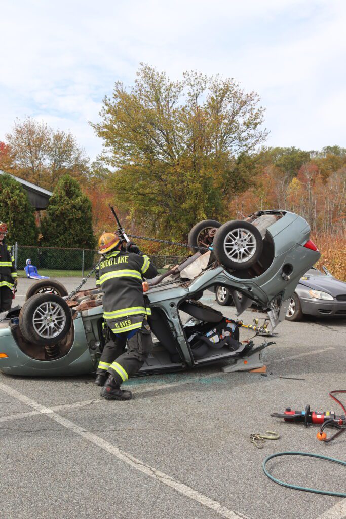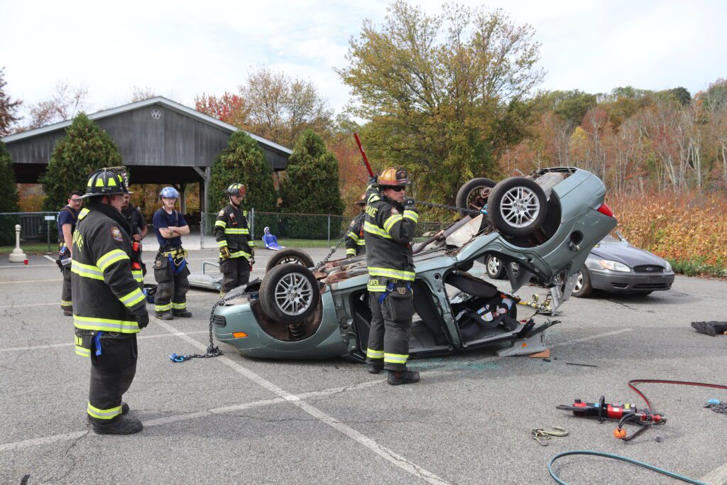 Recently the department gathered on a Saturday morning to drill on all of the rescue extrication tools on rescue 55. We had 2 cars one on its roof and had to remove 3 people from the rolled over car. The second car was an SUV that the crews drilled on removing someone from the car from the rear of the car this is called tunneling. The crews took turns with all of the tools and resources they had.