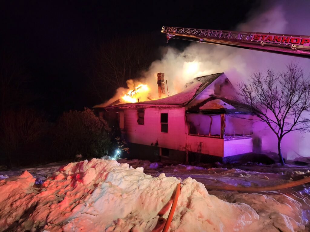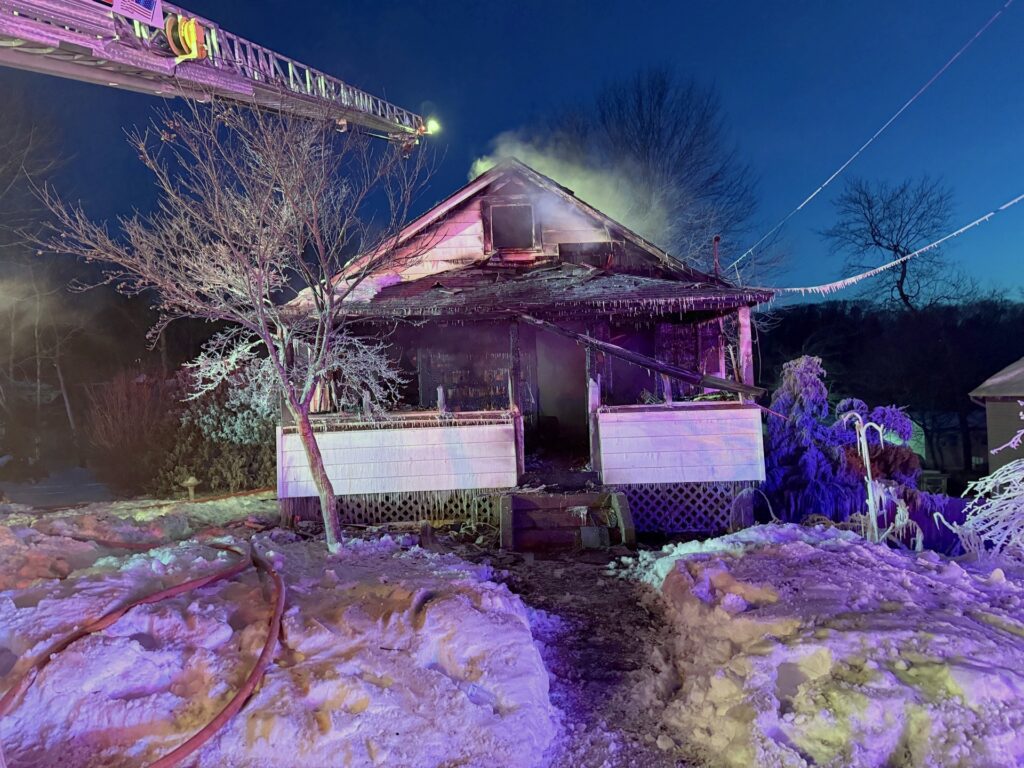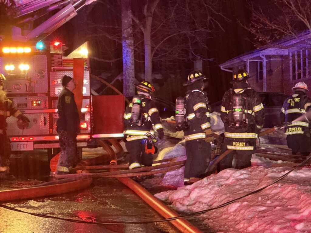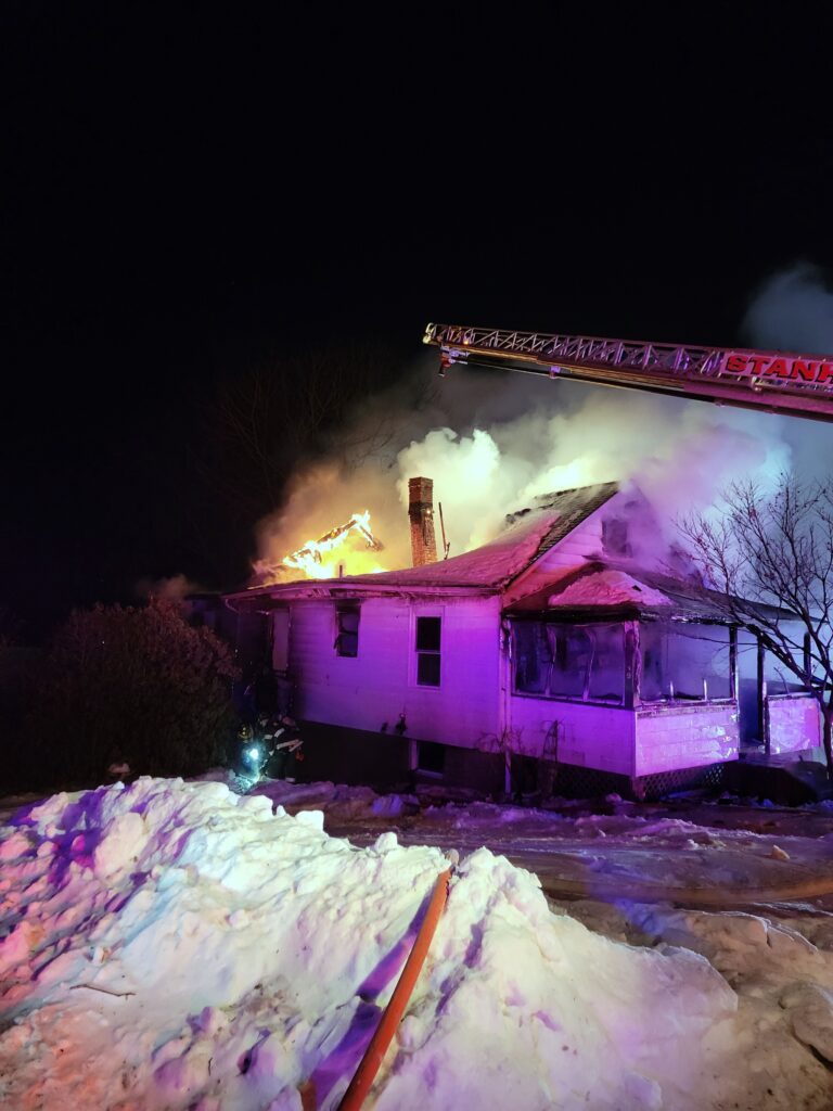 On one of the coldest nights this winter Ladder 58 along with Chiefs 1 and 3 responded to a house fire on Hill Rd. Ladder 58 stood by as the R.I.C. and later on in the morning they went to work overhauling and operating a hose line.