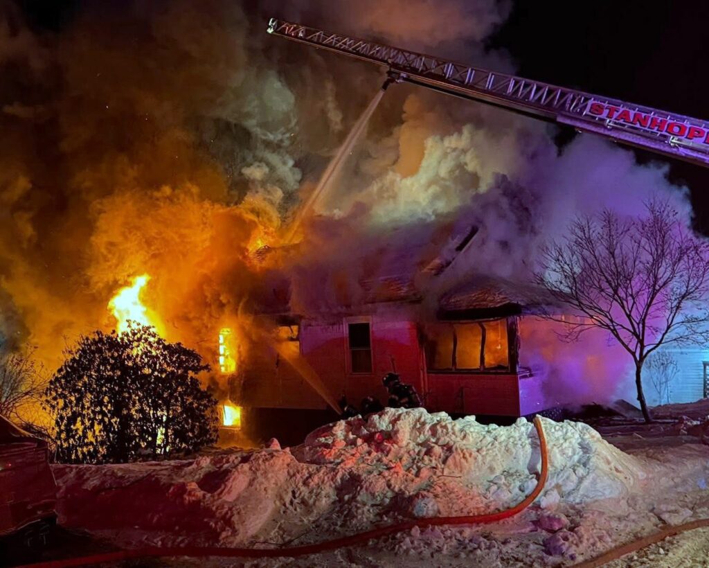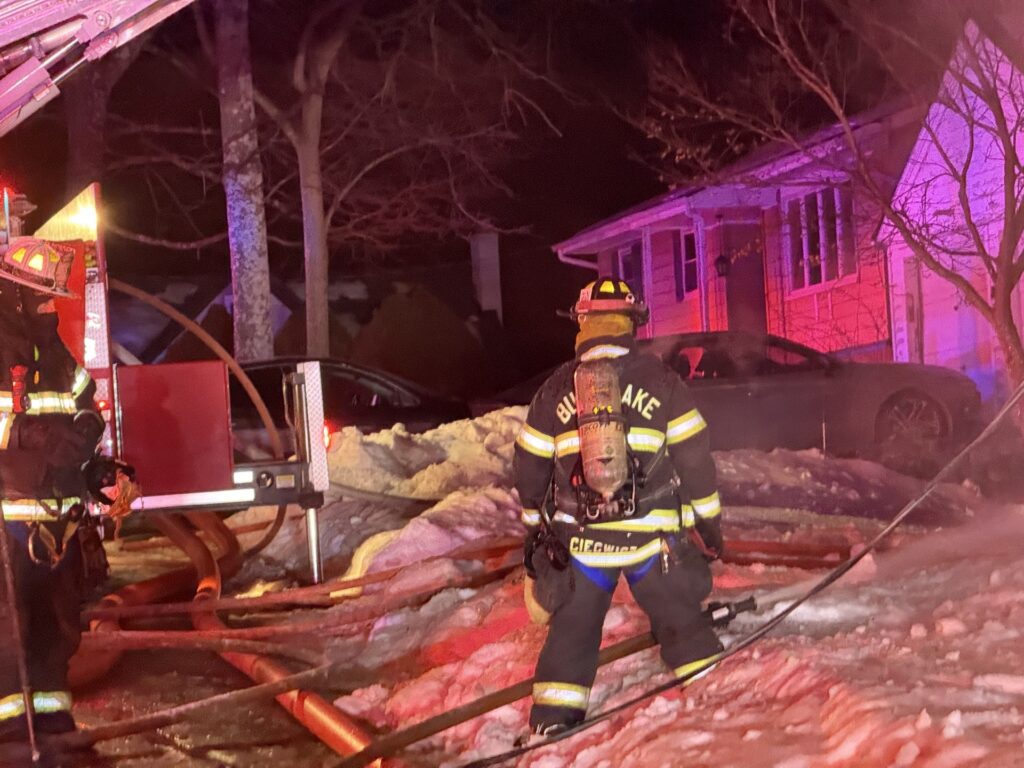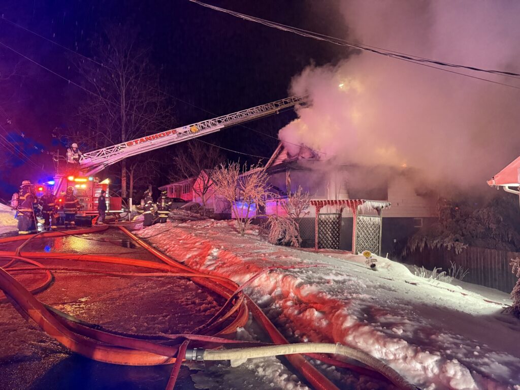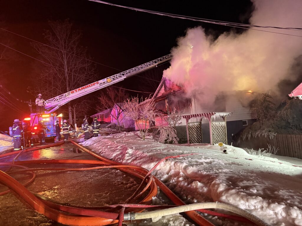 On one of the coldest nights this winter Ladder 58 along with Chiefs 1 and 3 responded to a house fire on Hill Rd. Ladder 58 stood by as the R.I.C. and later on in the morning they went to work overhauling and operating a hose line.
