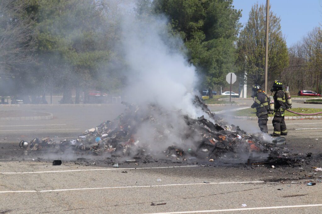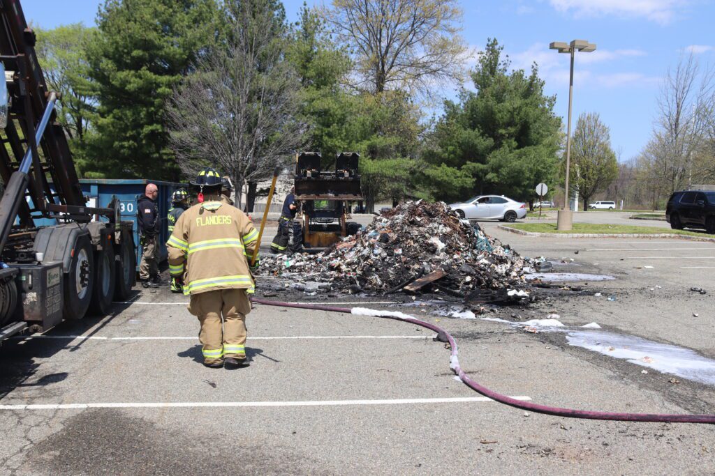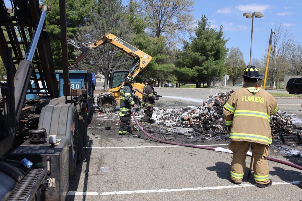 Late morning on Friday the 24th of April Budd Lake and Flanders responded to the Parkade Mall for a garbage truck fire. Upon arrival of Cars 50 and 52 along with Engine 59 the driver had dumped its load of garbage onto the parking lot. Engine 59 stretched a front bumper line on the fire and started to knock down the fire, Tender 57 and Engine 95 arrived to provide water and assist. The fire was knock down within 15 minuets and the garbage company came in and cleaned up the parking lot and hulled away all the garbage.